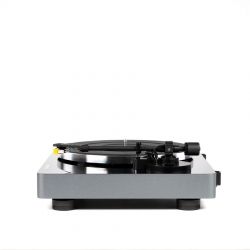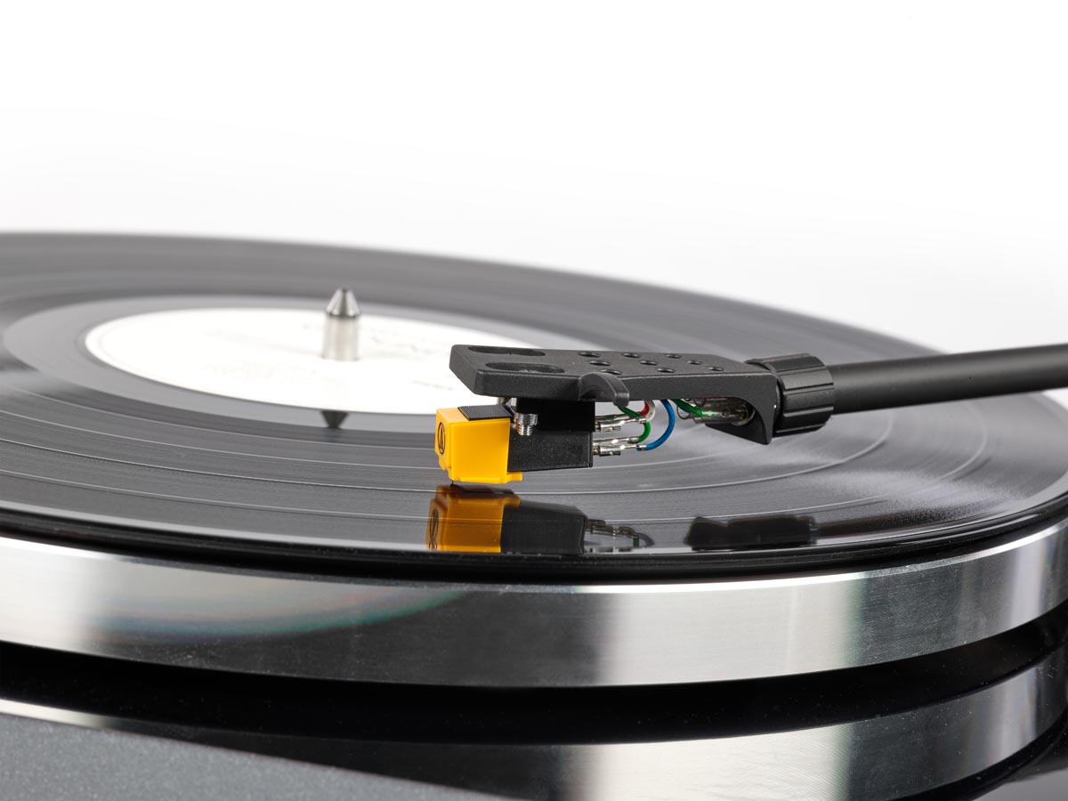 Der Aluminiumteller liegt auf einem Subteller, dessen gehärtete Stahlachse auf einer 8-Millimeter-Rubinkugel rotiert. Die Achse selbst steckt in Sinterbronzebuchsen. Das alles erweckt den Eindruck solider Handwerkskunst. Der Motor ist sowohl vom Chassis als auch vom Tonarm entkoppelt und erweist sich als recht zugkräftig. So waren selbst im langsamen Satz von Beethovens Hammerklaviersonate bei den Passagen, in denen Maurizio Pollini ins Grübeln verfällt, keine nennenswerten Tonhöhenschwankungen vernehmbar.