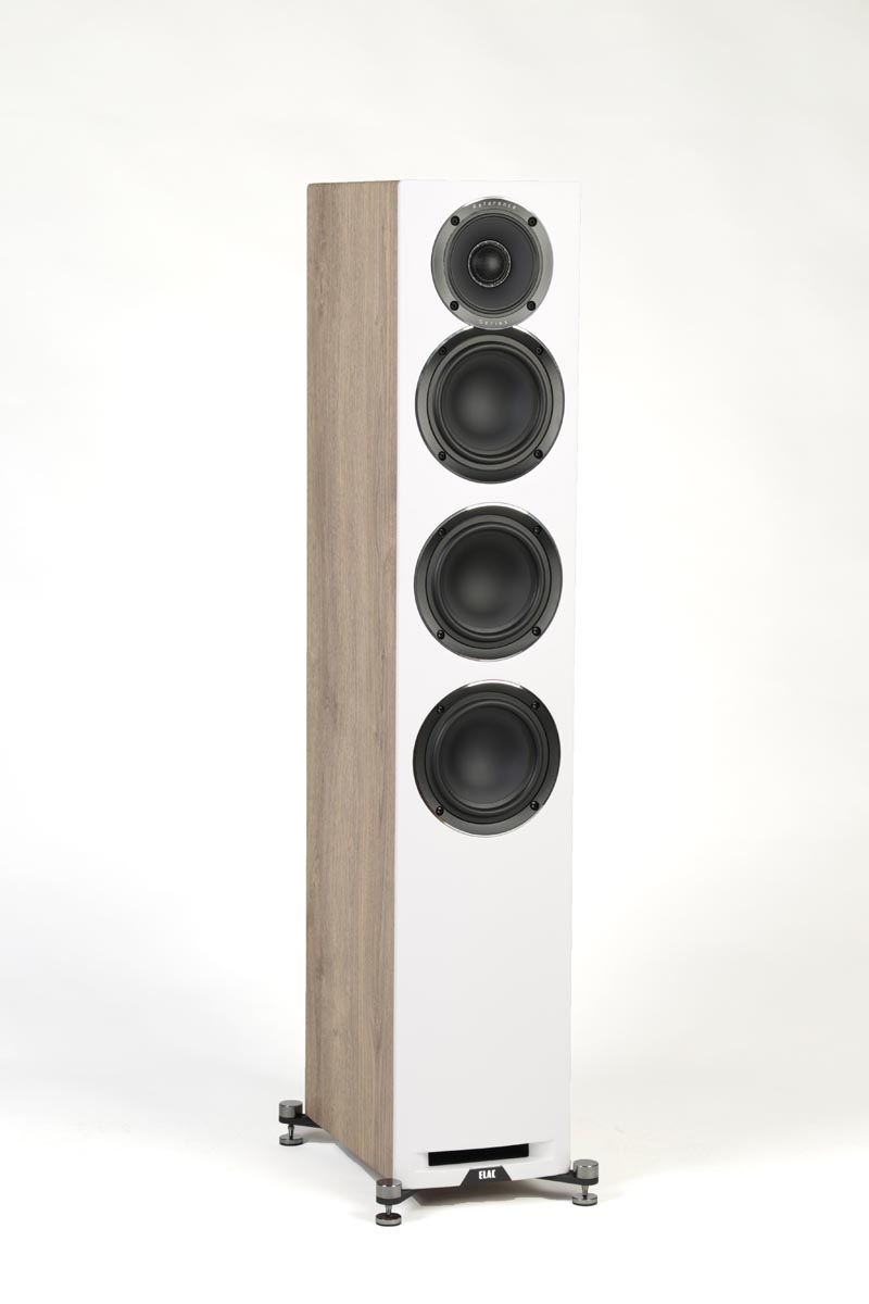 Die neuen UBR62 Regal-, UFR52 Stand- und UCR52 Center-Lautsprecher der ELAC Uni-Fi Reference Serie sind das Resultat der großen Resonanz auf Uni-Fi, Uni-Fi 2.0 und den neu etablierten Reference Serien. Nicht nur die Technik und der Klang stehen im Fokus der Veredelung, sondern auch die Optik der Lautsprecher. Im Ergebnis präsentiert sich die Uni-Fi Reference Serie in zwei Looks ausdrucksstark und gleichermaßen zurückhaltend. Die Verbindung von seidenmatt lackierter Schallwand (schwarz oder weiß), foliertem Korpus (Eiche hell und Walnuss Dekor) und schwarz gehaltenen Schallwandlern gelingt perfekt. Eloxiertes und lackiertes Aluminium als Werkstoff der Wahl bestimmen die wertige Haptik der Front. Ganz nebenbei verweisen sie darauf, dass auch auf technischer Seite ein großes Upgrade stattgefunden hat.