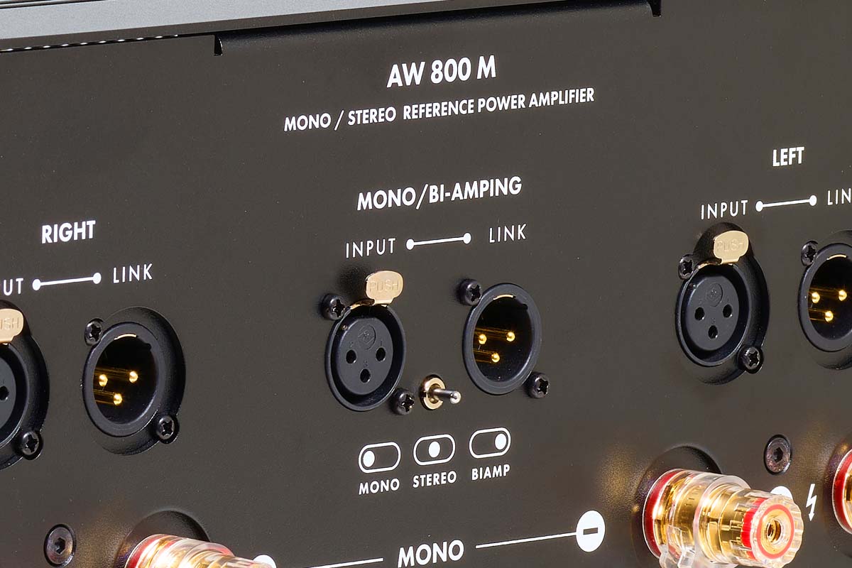 Das Hauptaugenmerk lag aber tatsächlich nicht so sehr auf Leistungssteigerung, sondern vor allem auf extrem niedrigen Rauschwerten, um das musikalische Geschehen vor den schwärzestmöglichen Hintergrund zu stellen. Die Gewichtssteigerung geht denn auch zu einem großen Teil auf das Konto eines noch massiver ausgeführten, mechanisch unerschütterlichen Gehäuses. Auch die auf jeweils 800 Voltampere angeschwollenen Ringkerntrafos sind nun nicht nur magnetisch, sondern auch elektrostatisch geschirmt. Als einer klassischen Quelle von Rauschanteilen hat man der Stromversorgung besonders viel Aufmerksamkeit geschenkt, die neben einer Hochfrequenzfilterung auch über einen Gleichstromblocker verfügt. Tatsächlich rät Hunger, die AW 800 M ohne vorgeschaltete Stromaufbereiter egal welcher Art zu betreiben – Klangsteigerungen seien nicht zu erwarten, und im Zweifel schnüre man damit nur die Dynamikreserven ein.