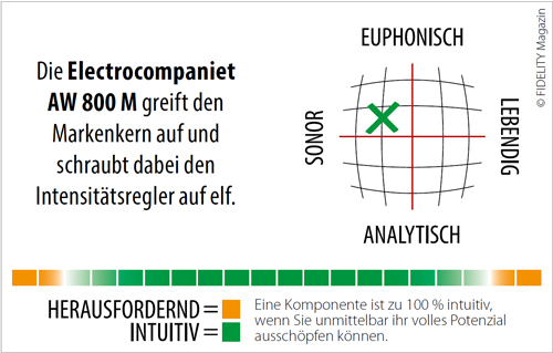 Die Electrocompaniet AW 800 M greift den Markenkern auf und schraubt dabei den Intensitätsregler auf elf.