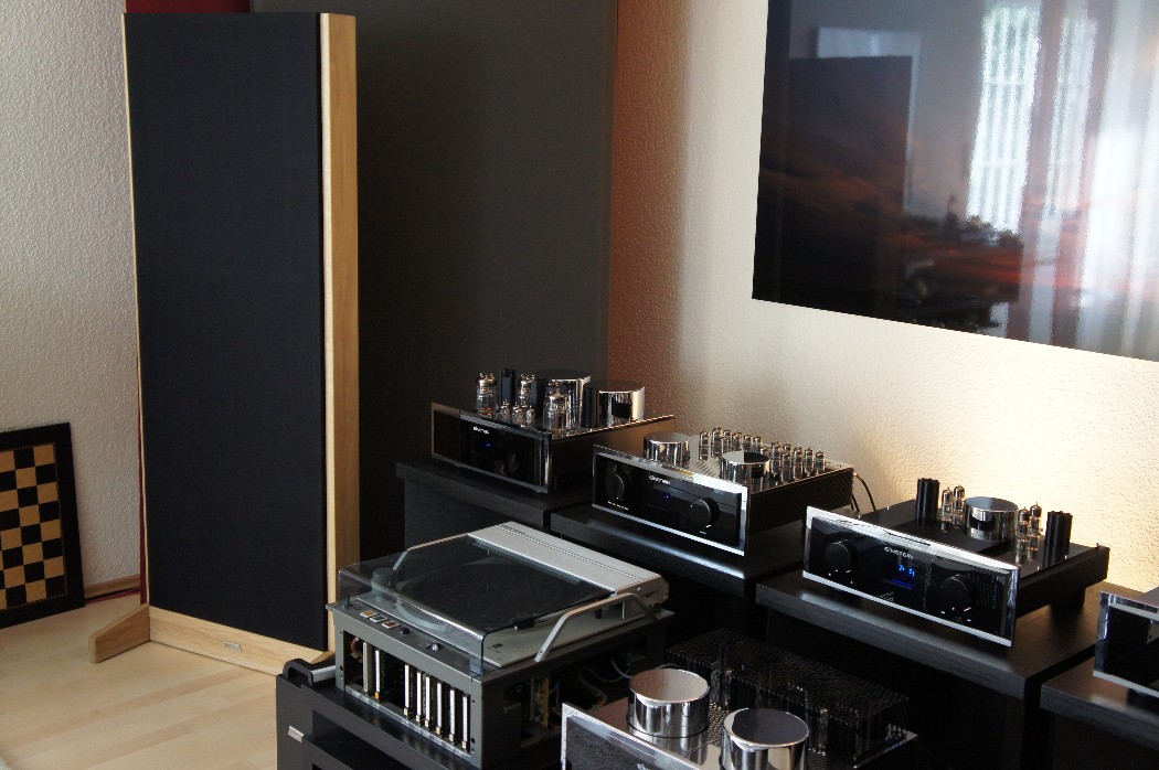 Thomas Middeldorf: Nicht alle Musikliebhaber wollen auf die ihnen lieb gewordenen Verstärker verzichten, die sie bereits lange benutzen. Es kam daher bei der Entwicklung darauf an, ein Lautsprechersystem zu schaffen, welches mit jeder Art Verstärker zu betreiben ist. Dabei soll an dieser Stelle jedoch gesagt werden, dass nicht jeder Verstärker gleiche Ergebnisse bringt. Sinus Elektrostaten machen die Unterschiede bei Verstärkern in signifikanter Weise hörbar.