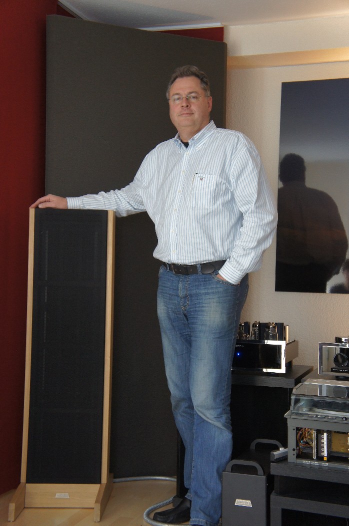 Thomas Middeldorf: Das Prinzip des Elektrostaten ist seit über 200 Jahren bekannt. Es nutzt als Kraftfeld ein elektrisches Wechselfeld und kein statisches Magnetfeld, wie alle anderen Lautsprecherkonzepte. Dadurch wird es möglich, das gesamte Membran homogen anzutreiben und Partialschwingungen zu vermeiden. Außerdem ist durch moderne Kunststofffolien und elektrisch leitfähige Beschichtungen ein sehr geringes Membrangewicht realisierbar, was zu extrem kurzen Anstiegszeiten führt. Dafür ist das menschliche Gehör extrem empfindlich, da zu Urzeiten zum Überleben die sofortige Erkennung von Feinden anhand der Geräusche, die diese verursachen, notwendig war. Kurze Anstiegszeiten bei Schallwellen rufen sofort extreme Aufmerksamkeit bei Menschen hervor. Diese biologische Eigenheit des menschlichen Gehörs nutzen wir aus. Musik zu hören mit unseren Sinus Elektrostaten ruft extreme Aufmerksamkeit hervor und ist ein besonderes Erlebnis.