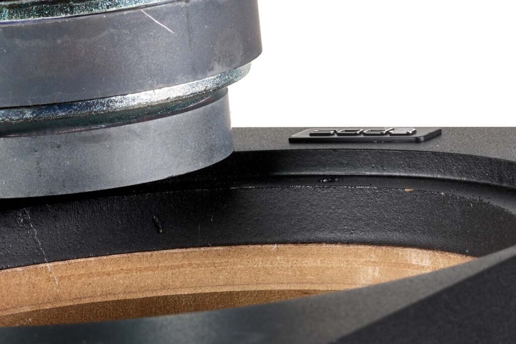 Basstreiber: High Power 7“, Schwingspulendurchmesser 35 mm, Hybrid-Ferrit- und Neodym-Magnet, spritzgegossener Konus mit variabler Dicke und Glimmerfüllung, Gummisicke mit geringer Hystereseeinfassung