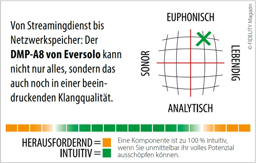 Der Eversolo DMP-A8 ist eine ernstzunehmende audiophile Komponente, die das Zeug zur Referenz hat. Eingefleischte Highender, die schon alles haben, mögen sich für etwas anderes entscheiden. Für alle anderen gilt eine Kaufempfehlung – und zwar eine wirklich dringende.