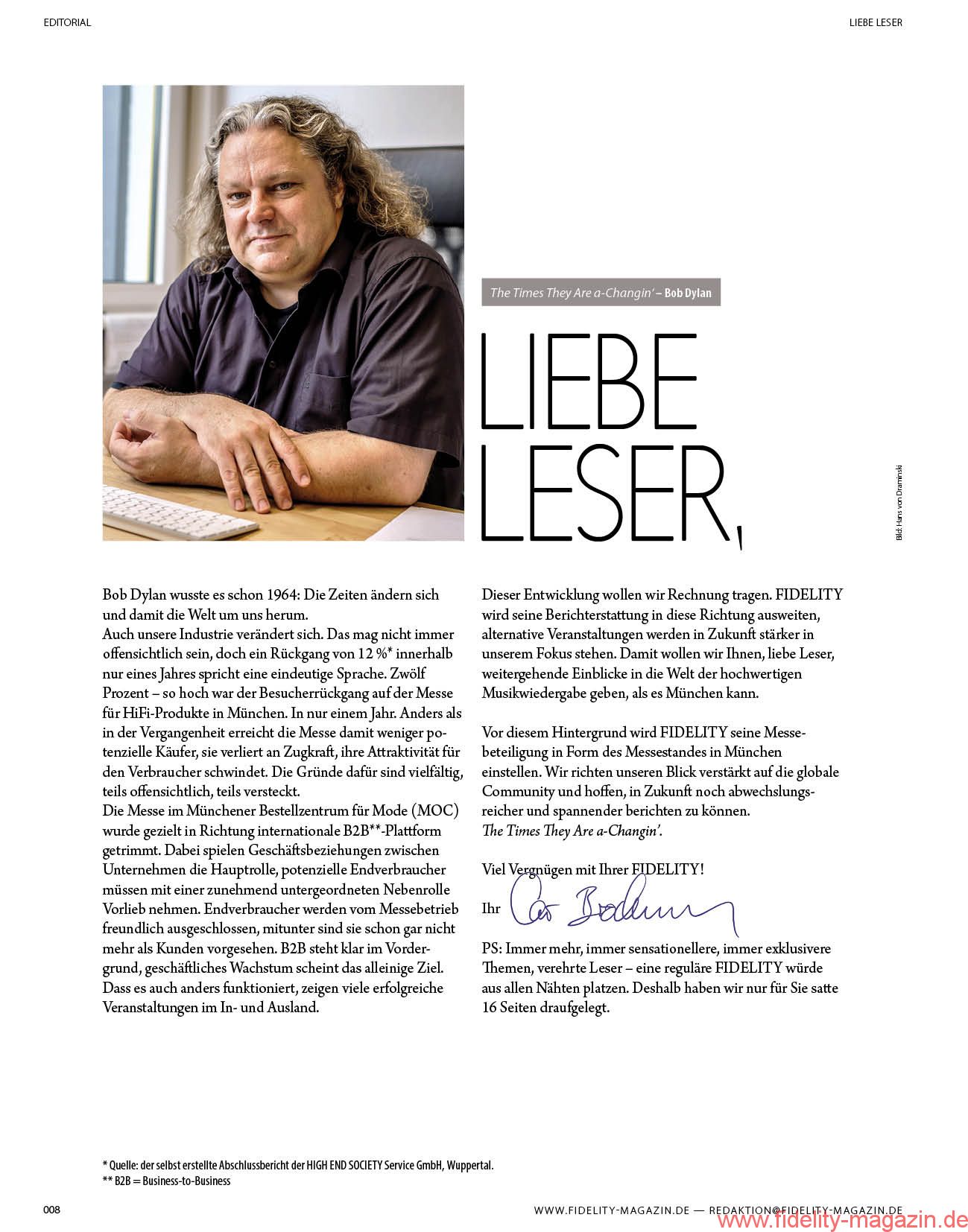 Dazu gibt es den mittlerweile einzigartigen FIDELITY-Musikteil. Darin beschäftigen wir uns neben vielen Musikrezensionen aus allen Musikrichtungen mit dem berühmten Rockpalast des WDR und seinen Mythen, hören Bob Dylan auf MFSL in Mono (!), werfen in der Serie „Hörsäle der Welt“ einen kritischen Blick in die Elbphilharmonie Hamburg …