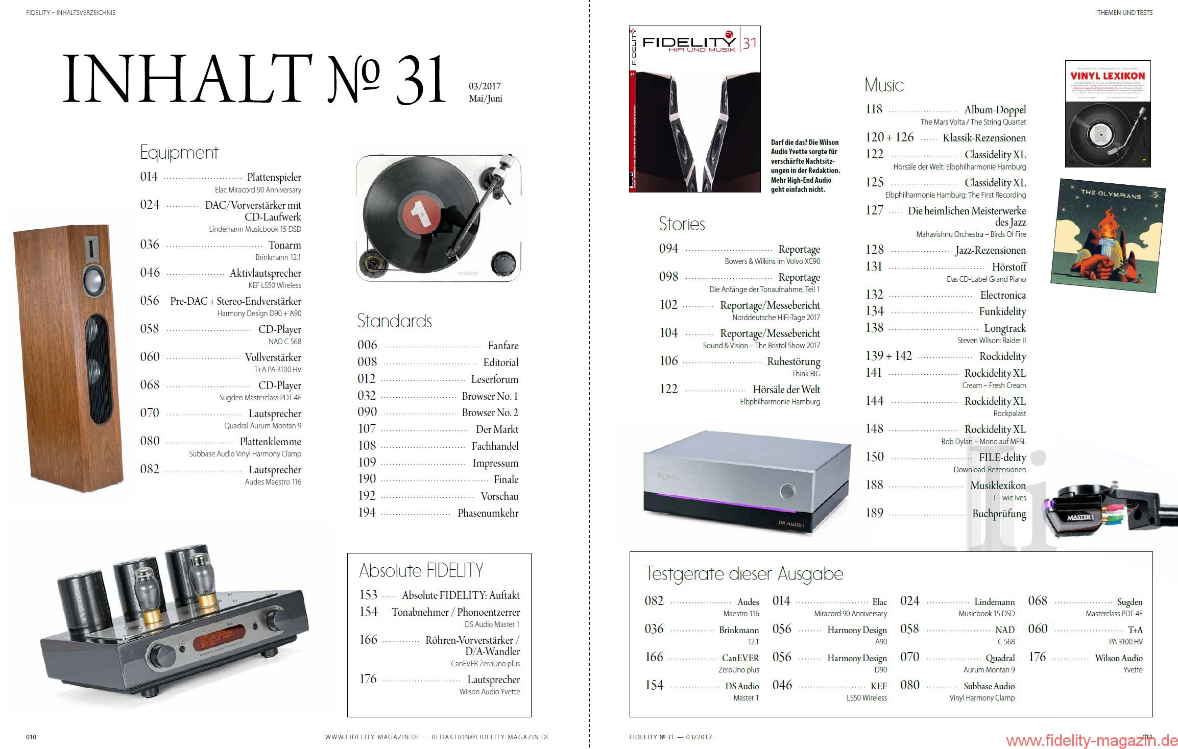 Neben der großen und exklusiven Titelstory über die neue Wilson Audio Yvette ist das FIDELITY 31 dicht gepackt mit einer Fülle von Highlights – aber seht selbst:
