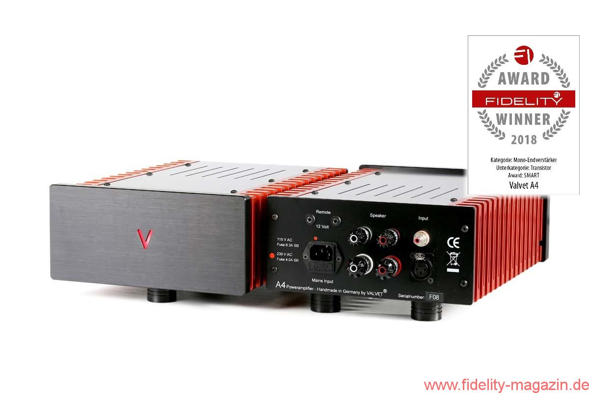 Zart und zierlich wirkt übrigens auch ein Pärchen der Valvet A4, die wir in feurigem Rot zu Besuch und dabei über die Maßen schätzen gelernt hatten. Sie meistert auch größere Herausforderungen mit Bravour, ein tolles Manufakturprodukt aus Norddeutschland. Süß, die Kleinen – und durchsetzungskräftig: pro Einheit 55 Class-A-Watt, die nach deutlich mehr klingen. Merke: „V“ wie vorzüglich, voll gut oder einfach Valvet.