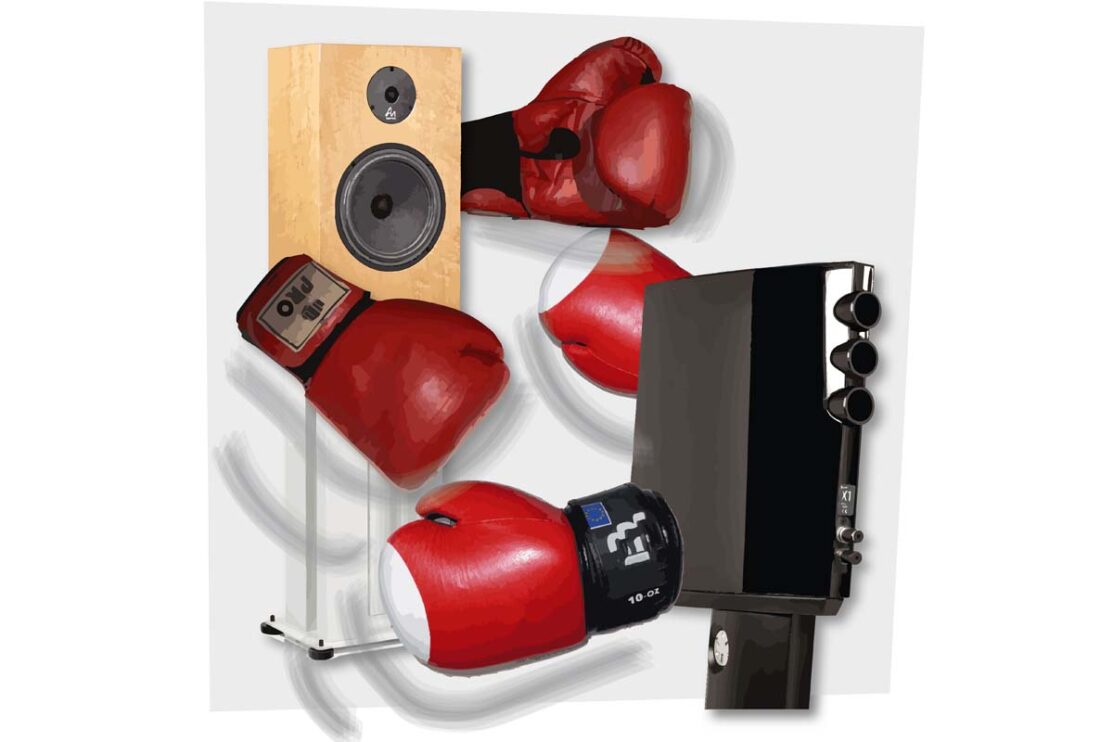 Um das Für und Wider von Bassreflex- und geschlossenen Lautsprechern beurteilen zu können, ist es hilfreich zu verstehen, wie Schallwandler und Raum aufeinander reagieren. Hierzu müssen wir uns zunächst die Mechanik der Basswiedergabe im Schallwandler selbst näher ansehen. Die Schwingspule, die die Membran in Schwingung versetzt und so Schallwellen im Raum erzeugt, ist im Tiefton nur die Hälfte der Gleichung, denn – Stichwort Schwingung – Membran und Schwingspule bilden eine federnd aufgehängte Masse, die deshalb auch eine Eigenfrequenz hat, auf der sie besonders gerne schwingen möchte. Die Federhärte ergibt sich aus der Steifigkeit der Aufhängung und dem im Lautsprechergehäuse eingeschlossenen Luftvolumen, das sich ebenfalls wie eine Feder verhält: Je kleiner das Volumen, desto größer die Luftdruckveränderung bei gleichem Membranhub, mit anderen Worten, desto straffer das Luftkissen, das das Treiberverhalten kontrolliert. Dass die Eigenfrequenz proportional zur Federhärte steigt und ebenso proportional zur aufgehängten Masse sinkt, ist einer der Gründe, warum Basschassis groß sind und gerne über massige, vierlagige Kupferschwingspulen verfügen. Ebenso erschließt sich, warum große Gehäuse tiefere Eckfrequenzen ermöglichen: Die eingeschlossene Luft setzt dem Hub weniger Federhärte entgegen und bedingt somit eine niedrigere Eigenresonanz. Bis hinunter zu dieser Resonanzfrequenz arbeitet der Treiber effizient. Darunter arbeitet das Luftvolumen zunehmend nicht mit, sondern gegen den Treiber, wodurch der Schallpegel mit 12 Dezibel/Oktave absinkt.