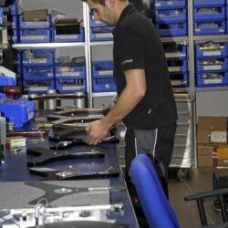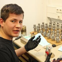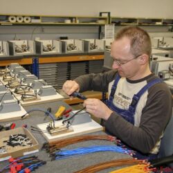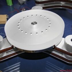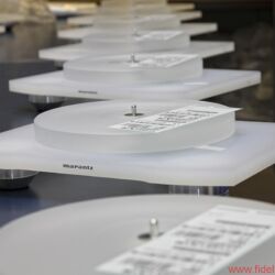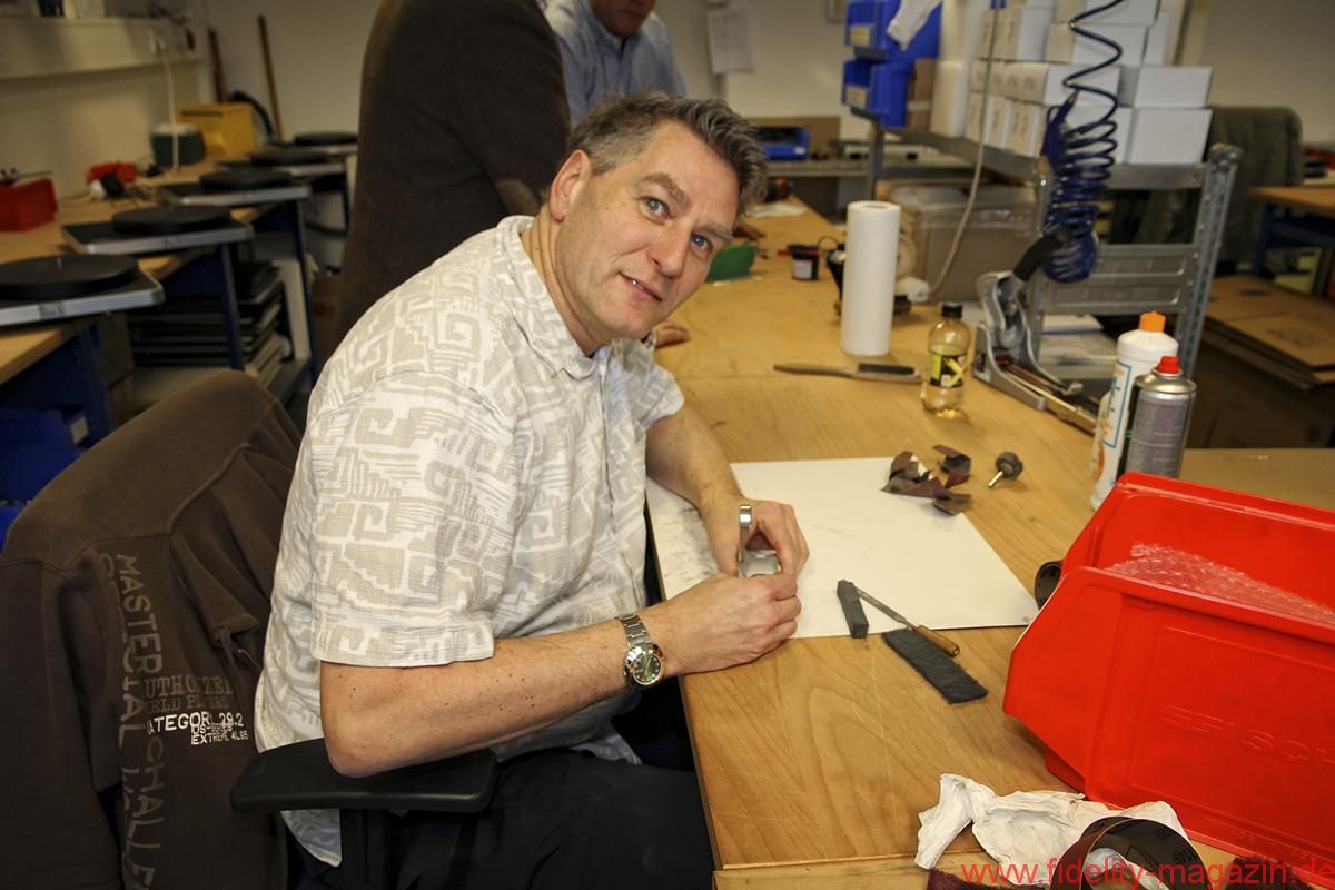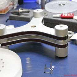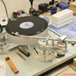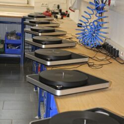 Wenn es sich nicht gerade um eine individuelle Sonderanfertigung handelt, werden Laufwerke, Tonarme und Plattenwaschmaschinen üblicherweise in Serien von 20 bis 50 Einheiten produziert. Danach steht dann wieder ein anderes Produkt auf dem Tagesplan. Dabei sind die unvermeidlichen Schmutzarbeiten, etwa die Rohbearbeitung großer Metallwerkstücke, in Betriebe im Umland ausgelagert. Hier vor Ort kümmert man sich nach Anlieferung – und Qualitätskontrolle! – um alle weiteren Veredelungs- und Montageschritte, misst und prüft und justiert bis zum komplett versandfertigen Produkt. Dabei, so Robert Suchy, erfülle man alle Auflagen von Behörden und Prüfinstanzen ohne Wenn und Aber. Erst jüngst habe man für die neue Palettenwickelmaschine und eine erweiterte Zertifizierung durch das Luftfahrtbundesamt entsprechende Mitarbeiterschulungen durchgeführt.