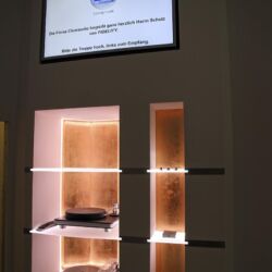 Im überschaubaren Windfang leuchtet ein Großbildschirm mit illuminierten Plattenspielern um die Wette. Unübersehbare Hinweise, wo es langgeht: Organisation oben, Produktion unten. Zum Einstieg („Wie wär’s mit ’nem frischen Kaffee, die Herren?“) nehmen wir die Treppe ins Obergeschoss. Cool: In den Edelstahl- Handlauf ist der Firmenname eingefräst. Unmittelbar hinter einer Glastür liegt der Empfangsbereich. Robert Suchy entert ihn mit einem raumgreifenden „Hallo“. Die anwesenden Damen der Buchhaltung schauen kurz hinter ihren Monitoren hervor, erwidern freundlich den Gruß und widmen sich sogleich wieder der geschäftigen Korrespondenz per Telefon, Rechner, Fax. Das zentrale Frontdesk hier wird interessanterweise nicht, wie sonst üblich, von einer Dame im Business-Outfit regiert, sondern von einem freundlichen jungen Herrn mit lässigem Hoodie, Dreitagebart und dezenten Piercings. Hinter ihm an der Wand tickt ein halbes Dutzend Weltzeituhren im XL-Format – New York, London, Erlangen … Das ist durchaus ein Fingerzeig, denn der Exportanteil des Unternehmens pendelt um 90 Prozent. Auf den Schildern angrenzender Räume ist nicht weniger als viermal der Name „Suchy“ zu lesen. Das wiederum darf als Hinweis verstanden werden, dass Clearaudio immer noch ein echtes Familienunternehmen ist – und auch so funktioniert.