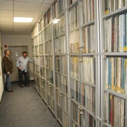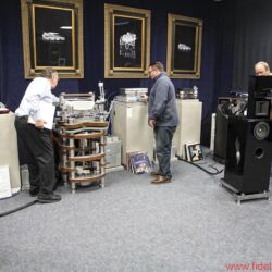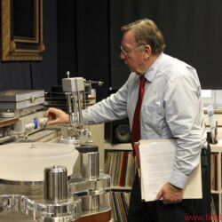 Peter Suchy eröffnet das seriöse Plattenauflegen augenzwinkernd: „Jetzt werde ich Sie erst einmal bewellen!“ Und schon sitzen wir in der berühmten Carnegie Hall. Der junge Harry Belafonte und sein Orchester sind in Höchstform, die Zuhörer begeistert: Ingo Schulz und ich wechseln uns auf dem Sweet Spot ab und können nur fröhlich kopfschüttelnd zugeben, dass es angesichts des Gebotenen kein Entkommen gibt. Die Kette (Statement-Laufwerk, Tangential-Arm, geheimnisvoll modifiziertes Goldfinger-MC, eigene Elektronik, Ascendo-Toplautsprecher) klingt absolut mitreißend. Der Senior bekennt, dass dieses Ergebnis nur mit einer „gewissen Besessenheit“ für Musik und Technik erzielbar ist. Und nach einer Doppelportion Harry Belafonte und Pink Floyd (The Wall) haben wir jetzt genug Groove für „die kleine Clearaudio-Tour“ getankt. Robert Suchy geleitet uns hinunter ins Erdgeschoss, in die Produktionsebene.
