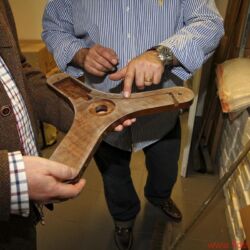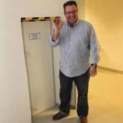 Zum Abschluss der Tour weckt eine kleine, unscheinbare Tür mein Interesse. Nanu, arbeiten hier etwa auch Hobbits? Robert Suchy, der neben dieser Tür plötzlich wie ein Riese wirkt, öffnet die Tür und zeigt hinunter in einen verwinkelten, sehr ungünstig geschnittenen Kellerraum, der nicht genutzt wird und leer steht …