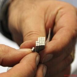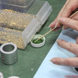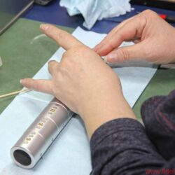 Allmählich scheinen wir die hinteren, ruhigeren von gefühlt hundert Räumen zu betreten: Schatzkammern der besonderen Art. Hier entstehen die Juwelen der Analogtechnik, die Tonabnehmer. Wir werfen einen mikroskopischen Blick auf die Spulenwicklung für die MC-Systeme. Die fertig gewickelten Spulen aus hauchzartem Golddraht sind derart winzig, dass die Kameraausrüstung an ihre Grenzen stößt. Auch die superstarken Miniaturmagneten, die hier einzeln penibelst ausgemessen und zu perfekten Sets zusammengestellt werden, sind eine echte Herausforderung. Gut möglich, dass aus exakt diesen Spulen, exakt diesen Magneten nach endloser, minutiöser Feinarbeit ein Goldfinger entsteht. Dessen Massivgold-Gehäuse fertigt Clearaudio ausnahmsweise nicht selbst, man vertraut auf die perfekte Zulieferqualität eines bewährten Juweliers.