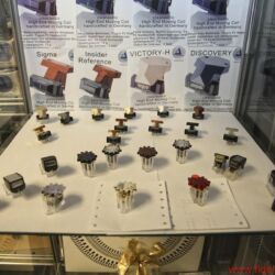 Fix und fertige, selbstverständlich streng geprüfte MC-Tonabnehmer landen schließlich in einer Art Tresor – ready for sale. Ein paar Meter weiter nebenan in einer Glasvitrine glitzern historische und aktuelle Tonabnehmer auf mehreren Ebenen, ein Dorado für analoge Feinschmecker. Übrigens: Im Gegensatz zu den superfiligranen MCs basieren Clearaudios Moving-Magnet- Systeme auf Audio-Technica-Modellen; die MM-Systeme haben auch den größeren Anteil an jährlich mehr als 10 000 verkauften Tonabnehmern.