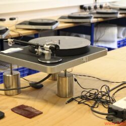 Ein paar Zahlen gefällig? Clearaudio beschäftigt – inklusive fünf Auszubildenden – über 40 fest angestellte Mitarbeiter. Mit zwei Dutzend engagierter Fachhändler in Deutschland macht man rund zehn Prozent des Umsatzes (ca. 6 Mio. Euro). Es wird also fleißig exportiert, und zwar in über 80 Länder, vor allem die USA ist ganz wild auf „analogue High-End-Audio from Central Franconia“. Wie war das noch mit dem Propheten, der im eigenen Land nichts zählt?