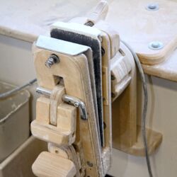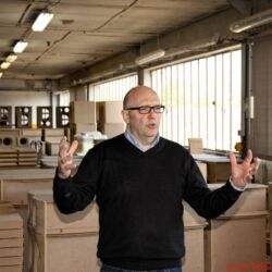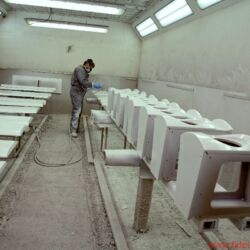 Zwei große Lackierräume dominieren die zentrale Halle. Nach Jahrzehnten intensiver Nutzung sind sie derart „abgerockt“, dass Betriebsleiter Christian Bou-chiquet schon kräftig zupacken, gar den Fuß zu Hilfe nehmen muss, um die großen Türen zu den Lackräumen wieder ordentlich zu schließen. Monsieur Bouchiquet war früher „Möbelfürsorger“ am marokkanischen Königshaus und begrüßt ausdrücklich, dass die Gehäusemanufaktur noch in diesem Jahr in neue, sehr viel großzügigere Räumlichkeiten umziehen kann. Dann ist Schluss mit den „Leerkilometern“ innerhalb des unübersichtlichen Gebäudekomplexes.