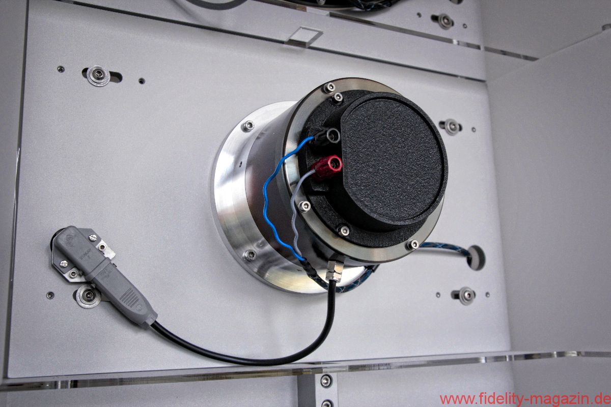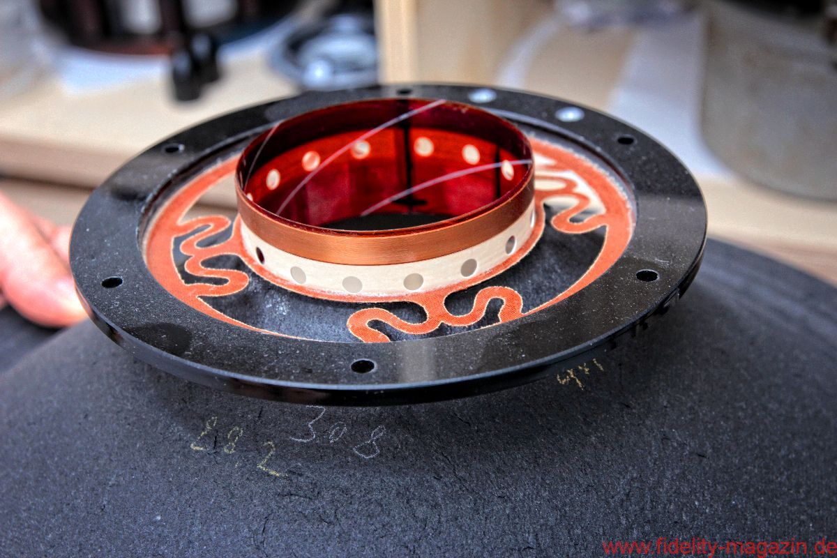 Jetzt aber nochmal im Detail: Warum Elektromagnet? Die Pro-Argumente sind durchaus objektiv. Ein Elektromagnet wird ungeachtet seines Alters und äußerer Einflüsse immer exakt die gewünschten Eigenschaften aufweisen. Die erzeugbare magnetische Flussdichte ist im Idealfall so hoch, dass die Metapher vom Raketenantrieb, mit Vorliebe angewendet vom ausgewiesenen Kenner historischer Lautsprechertechnik Michael Chung, Chef der koreanischen Elektronikschmiede Silbatone, keiner weiteren Erklärungen bedarf. Schließlich lassen sich mit einem Feldspulen-System unerwünschte Rückwirkungen der sich im Magnetfeld bewegenden Schwingspule auf eben jenes stark minimieren, womit mess- und hörbare Verzerrungen verringert werden.