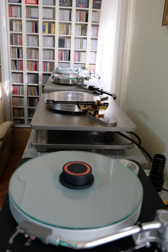 Nicht sparen sollte man aus seiner Sicht am Tonarm und am Tonabnehmersystem. Auf Wunsch stattet Spitaler seine Plattenspieler mit den Spitzenmodellen der englischen Schmiede SME aus – eingekauft und auf Lager gelegt, ehe die Briten beschlossen, ihre Tonarme nicht mehr einzeln, sondern nur noch an den eigenen Laufwerken montiert auszuliefern. Irgendwann wird sich auch Othmar Spitalers Lagerbestand erschöpfen. Weshalb er darüber nachdenkt, in enger Zusammenarbeit mit Wolfgang Haumberger einen eigenen Tonarm anzubieten, der „mindestens so gut wie die Modelle von SME, eher besser“ sein soll. Die Tonabnehmer stammen von Audio-Technica oder Ortofon, wobei superiorer Klang mit einem Seismograph schon unterhalb der Top-Riege zu haben ist.
