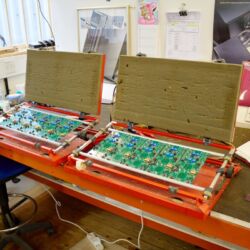 Unser Rundgang führt durch den Garten, an Lavendel und Birken vorbei ins Hauptgebäude. Dort entsteht die Elektronik. Neben den Aktivplatinen für die Lautsprecher fertigt ATC auch Komponenten. Wir erspähen sogar Prototypen neuer Modelle, die aber noch nicht fotografiert werden dürfen. In der Fertigung entdecken wir außerdem eine Vor-/Endstufen-Kombi, die von James Guthrie bestellt wurde – der Recording-Engineer war einst verantwortlich für den Sound von Pink Floyds The Wall. Den weitaus größten Teil des Gebäudes nimmt jedoch die Endmontage von Aktivmonitoren ein. Vier Paare der bildschönen SCM50 ASL erhalten hier gerade ihren letzten Schliff.