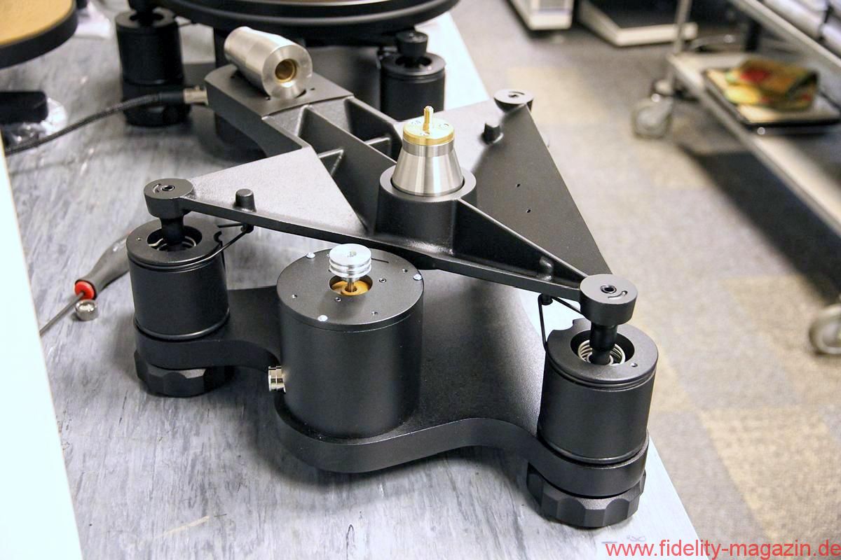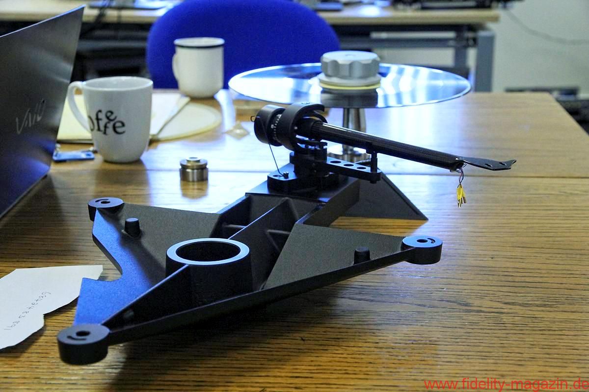 Doch auch ohne funktionierenden Hörraum strahlt Conrad Mas Zufriedenheit aus. Für ihn ist das stete Wachstum von AVID die fast schon logische Folge einer langfristig angelegten, kompromisslos kunden- und qualitätsorientierten Geschäftspolitik, die sich zwar schon von Anfang an, aber niemals ausschließlich um Plattenspieler drehte. Allerdings ist nicht zu übersehen, dass Analogtechnik und alles, was mit Plattenspielern zu tun hat, für Mas ganz oben an stehen. Er nennt Plattenspieler bis zum heutigen Tag sein „liebstes Hobby“. Ein nicht nur gewinnbringendes, sondern auch zeitloses Hobby, füge ich in Gedanken hinzu. Der Mann steckt immerhin schon rund vier Jahrzehnte im Thema. Nachdem er als musikbegeisterter Teenager in den Siebzigern von einem monströsen Selbstbau-Laufwerk bitter enttäuscht worden war, hatte er fast 20 Jahre lang sein „Lieblingshobby“ intensiv erforscht, hatte in Universitätsbibliotheken praktisch alles studiert, was jemals zum Thema Plattenspieler veröffentlicht worden war. Dank familiärer Verbindungen bereits in der Prä-Internet-Ära gut vernetzt, pflegte er gute Kontakte zu Wissenschaft und Hightech-Handwerk. Sogar ein Uni-Labor samt Hochleistungsrechner konnte er für seine Zwecke nutzen. Dort unterfütterte er seine Untersuchungen zum Hauptthema der Analogtechnik – die Vermeidung und gezielte Ableitung von Resonanzen – mit belastbaren Messungen.