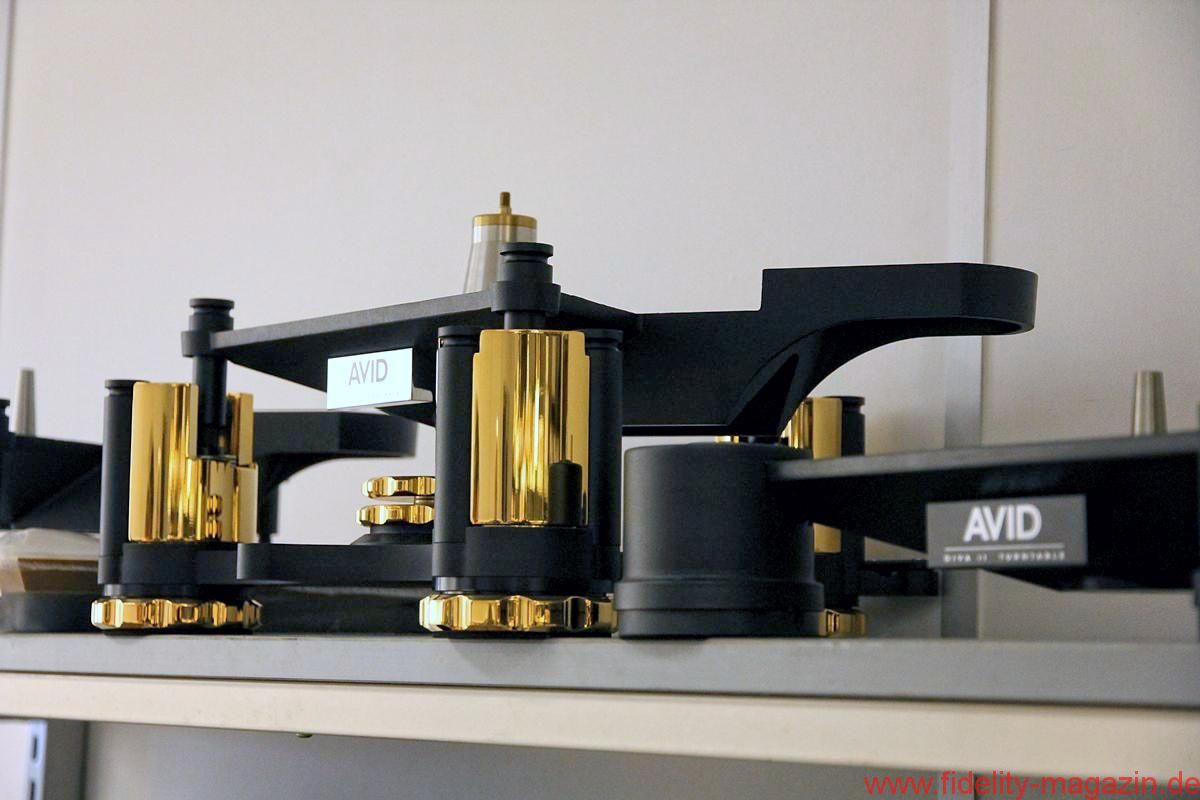 Womit wir wieder beim vermeintlich spannendsten Thema sind: Die bekanntesten AVID-Produkte innerhalb der HiFi-Szene sind die Plattenspieler. Und der Chef, der natürlich um die Qualitäten seiner Laufwerke weiß, schafft es durchaus wortgewandt, jedem Interessierten deren Besonderheiten bis ins sprichwörtlich kleinste Detail nahezubringen. Um wirklich überzeugend zu klingen, braucht der Mann nicht einmal einen Hörraum. Mas reklamiert für jedes Produkt, das den AVID-Schriftzug trägt, nichts weniger als die „klangliche Wahrheit“; das erklärte Ziel sei ein möglichst neutraler Klang. Ein typisches AVID-Produkt soll ein Werkzeug sein, das allen anderen Komponenten einer Kette beste Grundvoraussetzungen für eine optimale Performance bieten soll. Das Credo „Earth the vibrations!” mag Assoziationen in Richtung Blitzableiter aufkommen lassen, bezieht sich aber auf die Plattenspieler-Feinmechanik und ist der Grund, weshalb beispielsweise alle AVID-Laufwerke ein Chassis in pfeilähnlicher Form besitzen. Ein solches aus grobkörnigem Aluminium gegossenes Chassis ist relativ leicht, dank exakter Berechnung supersteif und zeigt auch schon ohne weitere Behandlung ein ausgesprochen resonanzarmes Schwingungsverhalten. Zusätzlich wird es noch von einer eigens von BASF für AVID entwickelten, sündteuren Speziallackierung linear bedämpft. Dieses aufwendige und kostspielige Verfahren sei für ihn klanglich ohne Alternative, erklärt Conrad Mas. Überhaupt erlaube man sich keine Kompromisse an all jenen Stellen, die für den Klang entscheidend sind. Keine Frage, nicht nur die Laufwerke als Ganzes, sondern auch Tellerlager, Stromversorgungen und die schon erwähnten Plattenklemmen des Hauses dürfen als vorbildlich gelten.