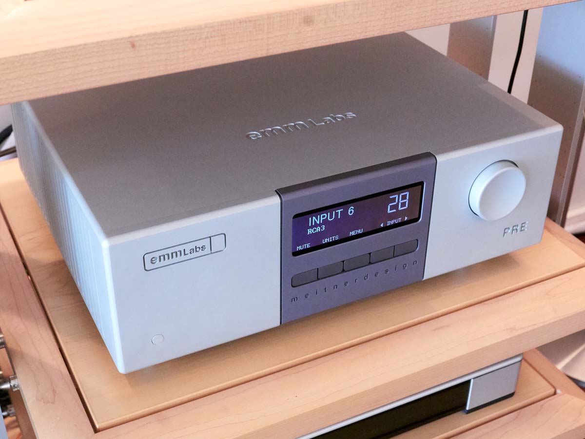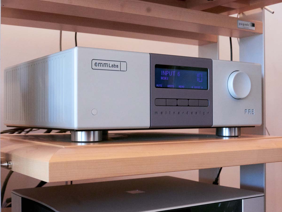 Auch beim Antrieb vertraut Her P. mittlerweile auf Elektronik aus dem Odenwald. Sage und schreibe sechs von Avantgarde Acoustics Mono-Amps (Model 1) treiben die beiden Hörner in schlagkräftiger Tri-Amping-Kooperation an. Als Vorstufe, D/A-Wandler und Zuspieler dienen die herausragenden Komponenten von EMM Labs, die ich zwar kannte, aber noch nie in Aktion erleben konnte. Abgerundet wird die Anlage von Transrotors Fat Bob und einem Sooloos-System, das über seine Netzwerkverbindung mit Servern im Keller des Gebäudes verbunden ist. Die gesamte Anlage wird über eine separate Stromzuführung gespeist. Kurzum: Hier bleibt nichts dem Zufall überlassen.
