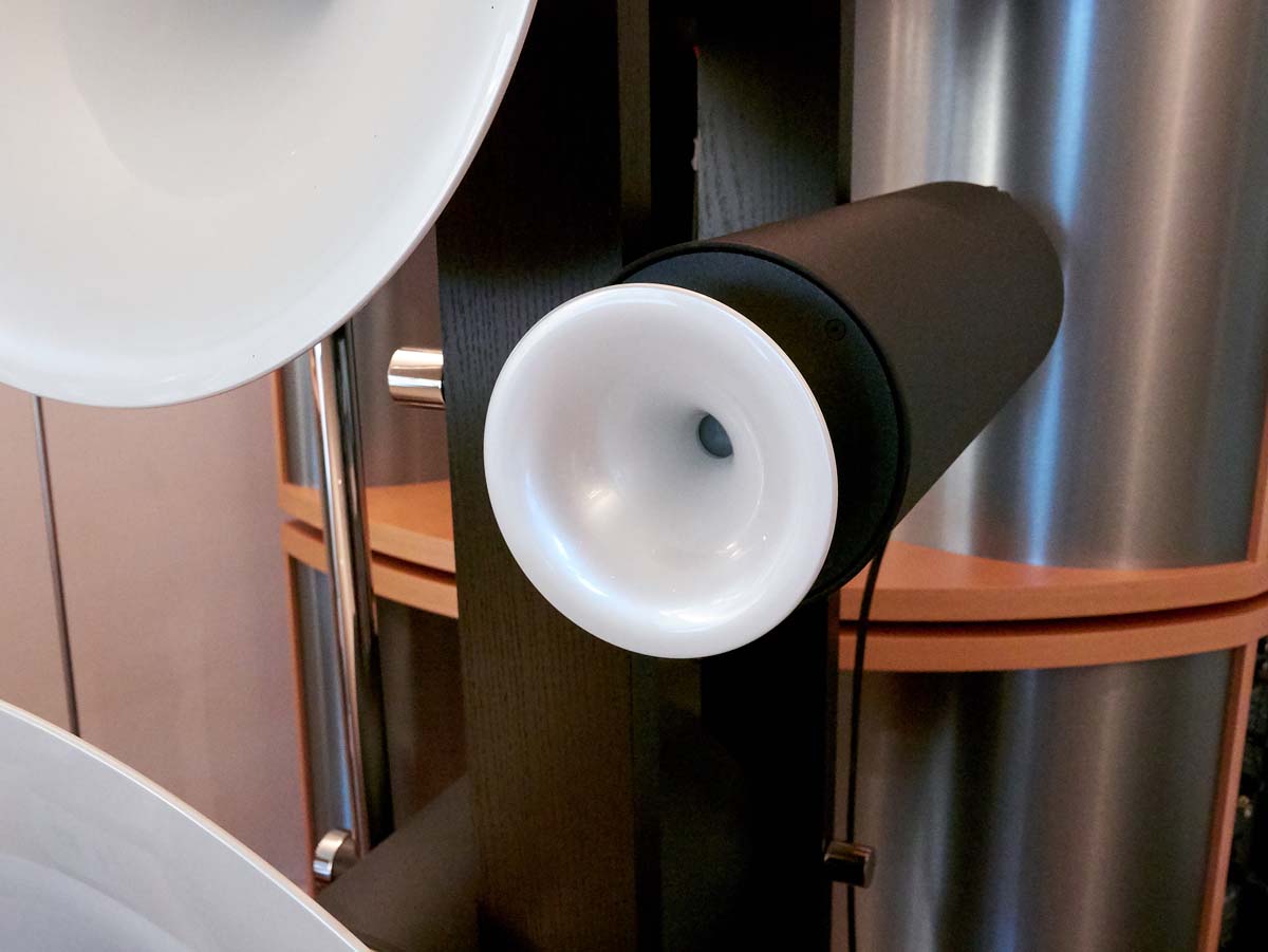 Durch einen plötzlichen Impuls komme ich auf die Idee, dass man die sechs Subwoofer ja mal abschalten könnte. Nur um einen Eindruck zu bekommen, wie die Trio im Alleingang tönt. Natürlich klingt das großkalibrige Horn auch ohne die Bass-Booster bereits voll und transparent. Der Kontrast könnte trotzdem kaum größer sein: Nicht nur, dass plötzlich der emotionsgeladene, ja, geradezu markerschütternde untere Frequenzbereich verschwindet, die Darbietung verliert auch merklich an Tiefe und Homogenität. Dieser Eindruck hängt natürlich in hohem Maß von der Umgebung ab. Immerhin müssen die Lautsprecher im Haus der P.s einige Hundert Kubikmeter Luft bedienen. Die Trio ist für sich betrachtet natürlich ein superber Lautsprecher, die sechs Bässe sind hier aber weit mehr als ein reines „Add-on“. Sie entpuppten sich im Verlauf unseres illustren Hörnachmittags als Salz in der Suppe und machten das System für mich zu einem unvergesslichen Erlebnis.