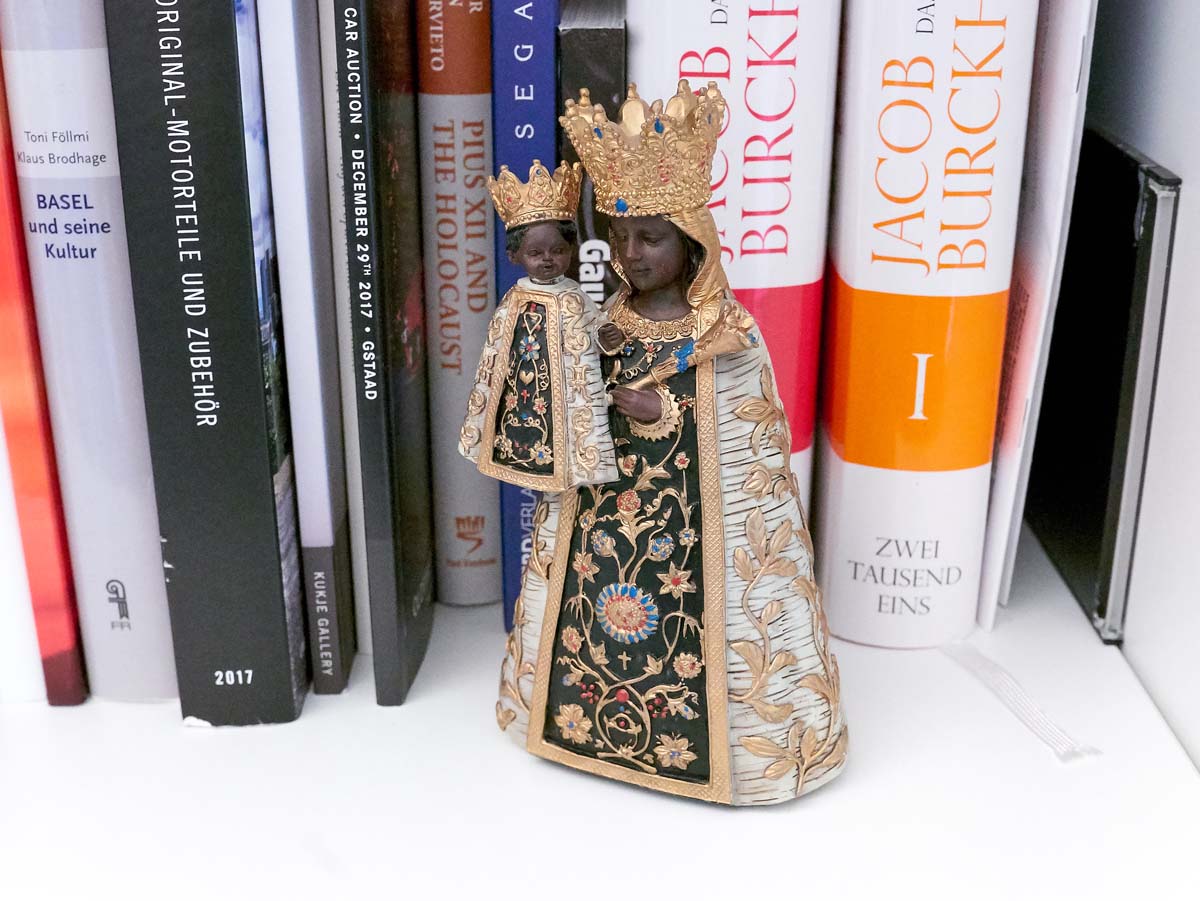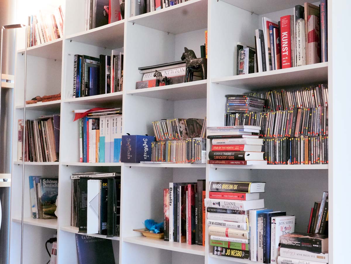 Eine langgestreckte Fensterfront flutet das Zimmer mit Licht und gibt den Blick frei auf einen gepflegten Garten nebst abgedecktem Swimmingpool. Der Raum geht vom Wohn- und Hörzimmer L-förmig in einen Essbereich über und mündet schließlich im großzügigen Küchenbereich. In jedem Winkel des Raums entdecke ich zeitgenössische Kunst, großformatige Fotografien sowie Fotokollagen. Aus allen Richtungen blinzeln mich Skulpturen und andere Dekorationen an, die ich allerdings erst später auf meinen Fotos wahrnehme – während unseres Gesprächs haften meine Blicke am beeindruckenden HiFi-System der Familie P.