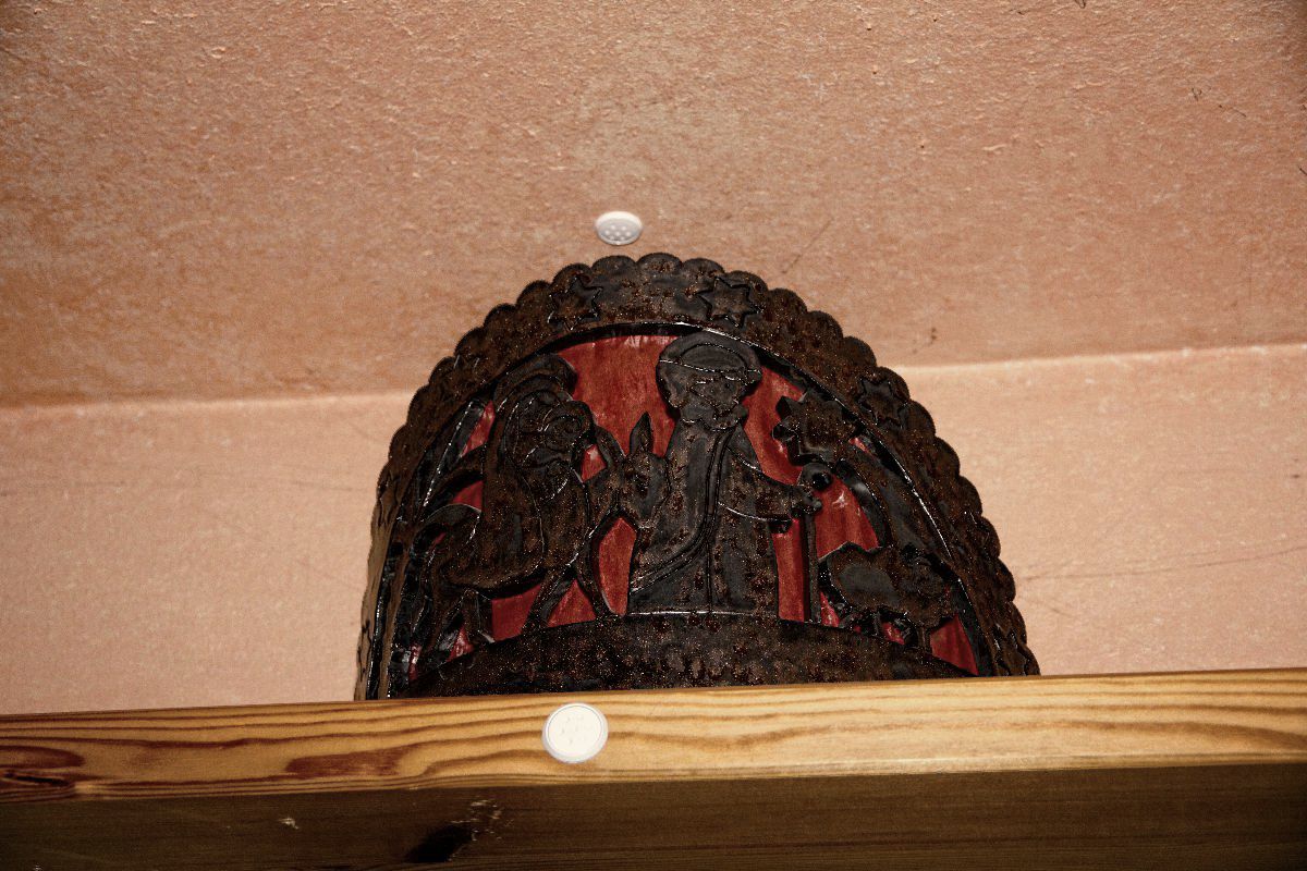 Bei Herrn H. kleben diese Punkte vorschriftsmäßig an Wänden, Fensterrahmen und Regalstreben, aber eben auch zentimetergenau in der Auslegware. Was denn seine Frau dazu sagt, möchte ich wissen. Herr H. schmunzelt. „Meine Frau ist tolerant und akzeptiert mein Hobby so, wie es ist. Dafür reitet sie ja auch auf ihrem eigenen Pferd …“ Und die paar Klebepunkte im Teppich gehören nun mal dazu, wenn man wirklich konsequent sein will. Sie sind einfach überall im Raum zu finden. An der Decke beispielsweise formieren sie sich fast schon zu einem kleinen Sternenhimmel. Oberhalb eines hölzernen Decken-umlaufs begleiten sie all die dort untergebrachten Skulpturen und Figuren. Sie finden sich auch hinter den Gardinen. Hinter einem großen, von Herrn H. selbst gemalten Ölgemälde. Unterm Tisch. Und auf dem Gestell des Hörsessels.