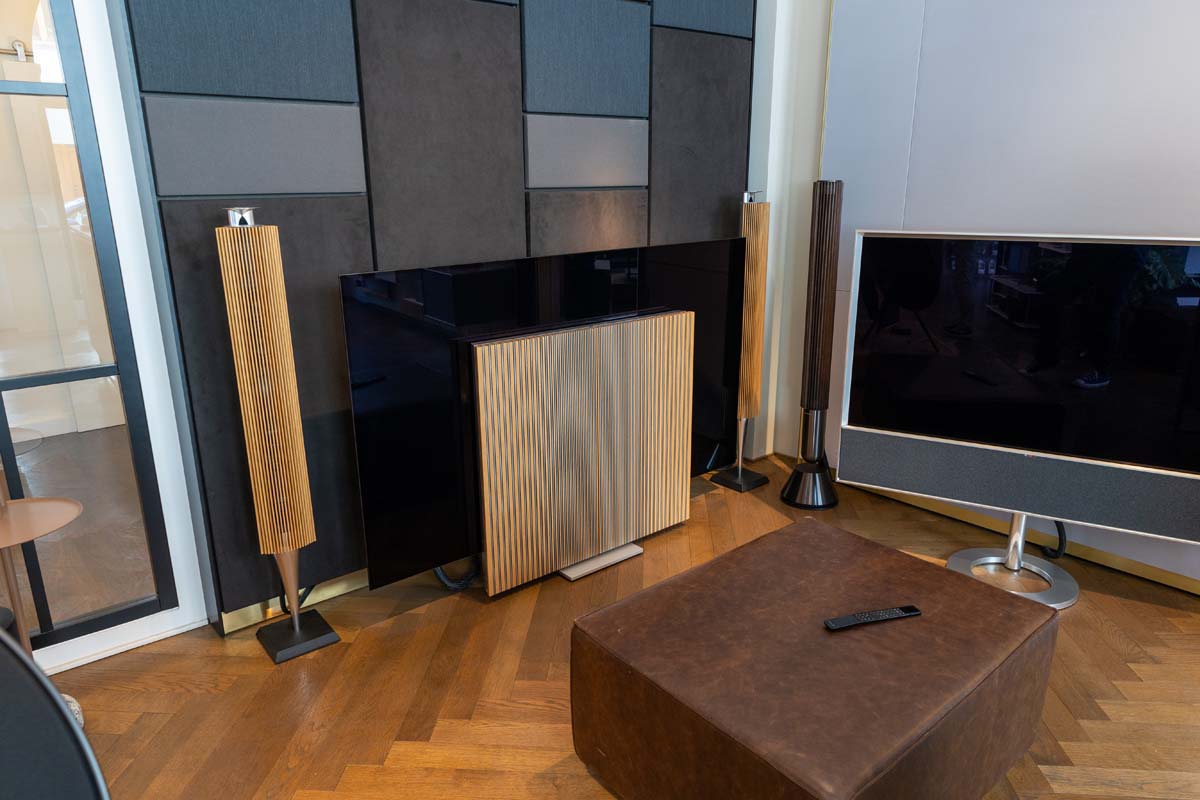 Das geht bisweilen weit über das reine Verkaufssortiment hinaus, wie uns Alexander Heisig erklärt. Als „Technical Specialist“ berät er nicht nur Kunden im Laden, sondern betreut vollständige Systemplanungen von der ersten Idee bis zur Umsetzung beim Auftraggeber. Wir sprechen hier nicht (nur) über die Zusammenstellung und Installation von Ketten, sondern von kompletten Home-Entertainment-Konzepten samt Bildwiedergabe und angepasster Remote-Lösung. Längst geht es bei der „Custom Installation“ nicht mehr allein darum, Anlagen zu vernetzen und unsichtbar im Raum verschwinden zu lassen. Dank designorientierter Lösungen wie B&Os BeoSound Shape oder Samsungs Frame-Fernsehern lassen sich heute Lösungen finden, die man gern zeigt. Aus diesem Grund arbeiten die Heisigs auch mit Marken wie Montana und Spectral zusammen, Hersteller, die sich auf maßgeschneiderte und bisweilen äußerst farbenfrohe Medienmöbel spezialisiert haben.