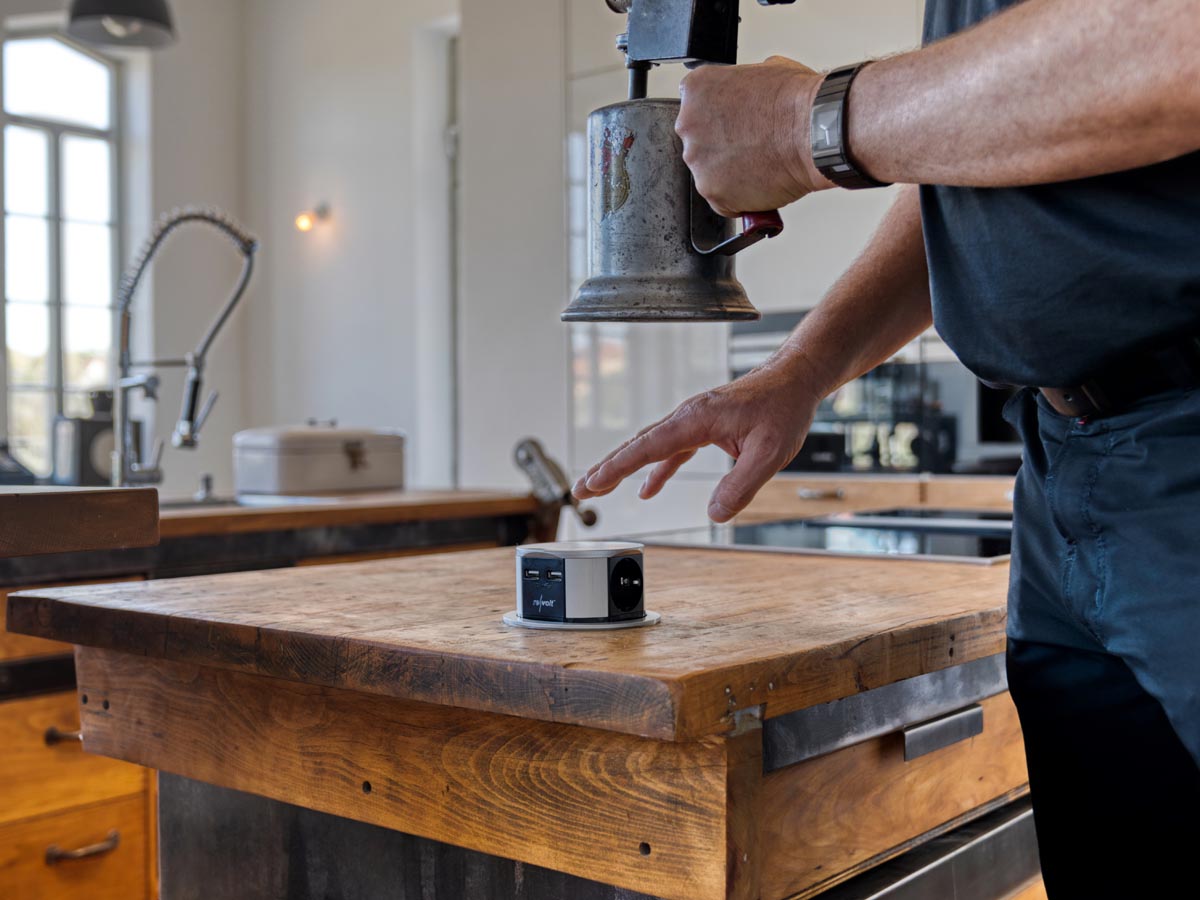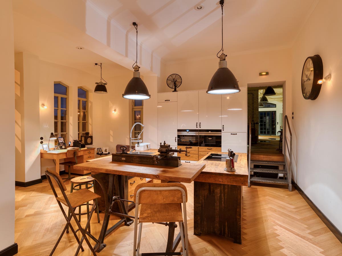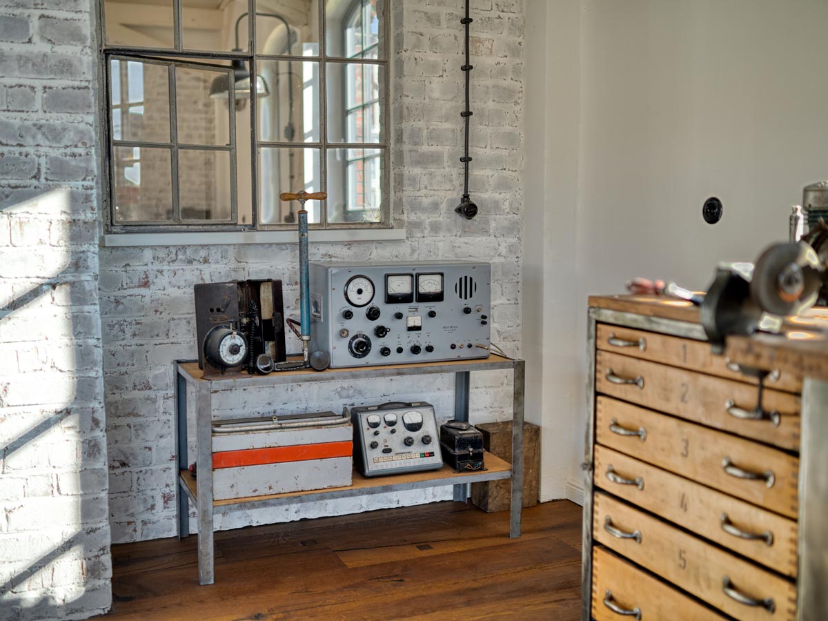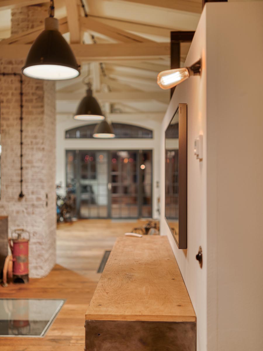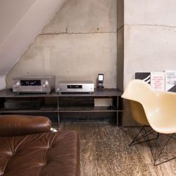 Für ein anderes Projekt, diesmal in einem geschichtsträchtigen Bahnhofsgebäude, musste die Planung mit noch mehr Bedacht angegangen werden. Die Eigentümer wollten den historischen Charme des riesigen Backsteinbaus mit allem Komfort technisieren, auf keinen Fall aber technisch überfrachten. Optimalerweise sollte überhaupt nichts von den Installationen zu sehen sein. Überall im Gebäude installierten die Profis des HiFi Forum abgehängte Deckenelemente, in denen Lautsprecher verbaut wurden, die für eine prozessorgesteuerte, flächendeckende Schallausleuchtung der Räume sorgen. Dort, wo es erforderlich war, etwa im Wohnzimmer, wurden breitbandige In-Wall-Wandler verbaut, die von unsichtbaren Subwoofern unterstützt werden. Da die Räume vergleichsweise offen gestaltet wurden, waren zahllose elektronische und mechanische Akustikmaßnahmen erforderlich, um den verschiedenen Anlagen einen natürlichen Klang zu verleihen. In diesem Projekt zeigt sich aber auch die Liebe zum Detail, mit der Neuendörfer plant. So wurde ein dekoratives Vintage-Ölkännchen auf einem der Sideboards platziert, das sich bei näherer Betrachtung als umfangreiche USB-Ladestation für Smartgeräte aller Art entpuppt – nur eine von vielen individuellen Lösungen.
