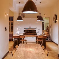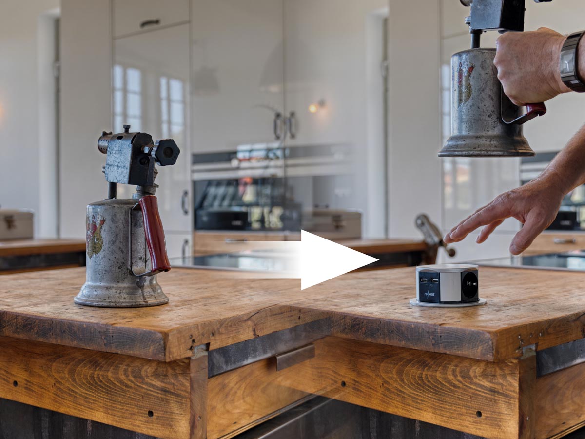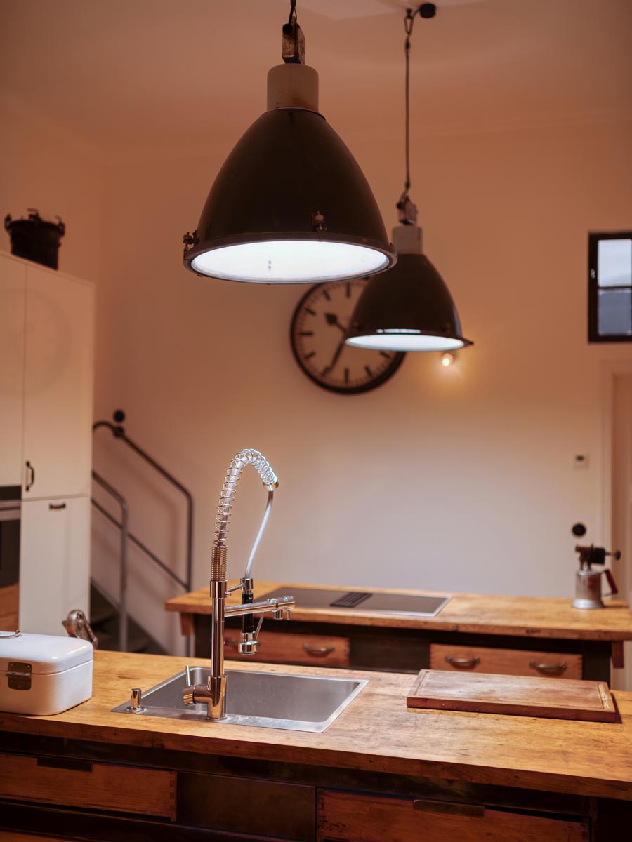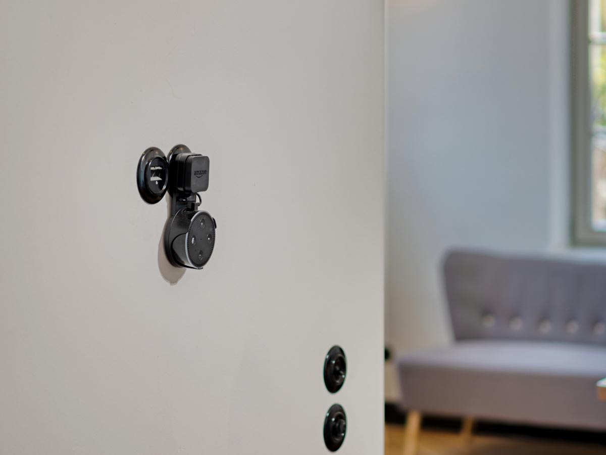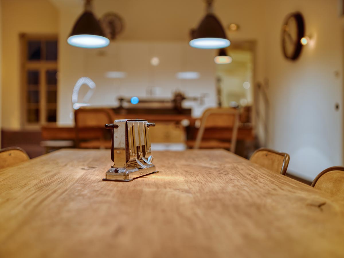 Für ein anderes Projekt, diesmal in einem geschichtsträchtigen Bahnhofsgebäude, musste die Planung mit noch mehr Bedacht angegangen werden. Die Eigentümer wollten den historischen Charme des riesigen Backsteinbaus mit allem Komfort technisieren, auf keinen Fall aber technisch überfrachten. Optimalerweise sollte überhaupt nichts von den Installationen zu sehen sein. Überall im Gebäude installierten die Profis des HiFi Forum abgehängte Deckenelemente, in denen Lautsprecher verbaut wurden, die für eine prozessorgesteuerte, flächendeckende Schallausleuchtung der Räume sorgen. Dort, wo es erforderlich war, etwa im Wohnzimmer, wurden breitbandige In-Wall-Wandler verbaut, die von unsichtbaren Subwoofern unterstützt werden. Da die Räume vergleichsweise offen gestaltet wurden, waren zahllose elektronische und mechanische Akustikmaßnahmen erforderlich, um den verschiedenen Anlagen einen natürlichen Klang zu verleihen. In diesem Projekt zeigt sich aber auch die Liebe zum Detail, mit der Neuendörfer plant. So wurde ein dekoratives Vintage-Ölkännchen auf einem der Sideboards platziert, das sich bei näherer Betrachtung als umfangreiche USB-Ladestation für Smartgeräte aller Art entpuppt – nur eine von vielen individuellen Lösungen.