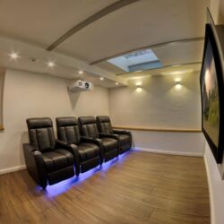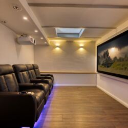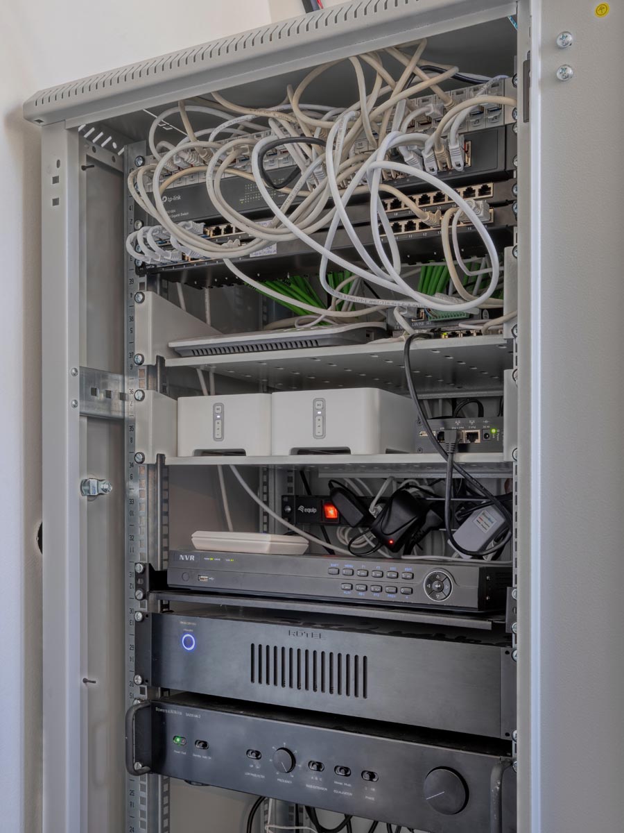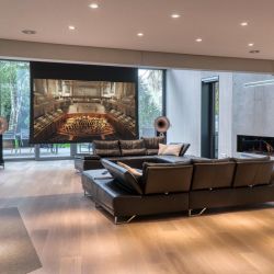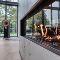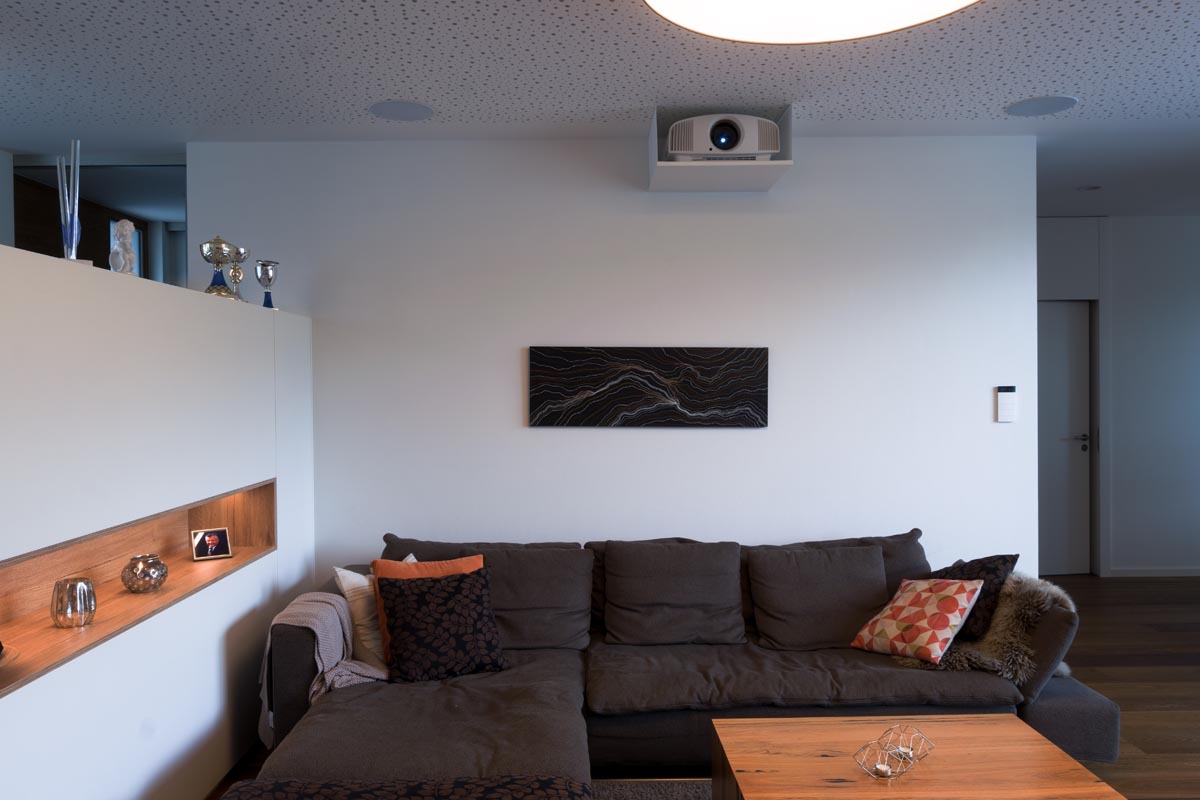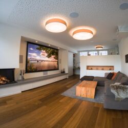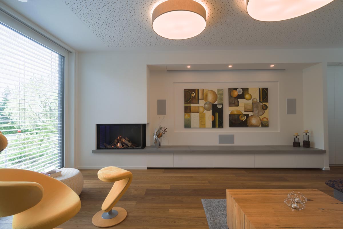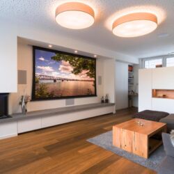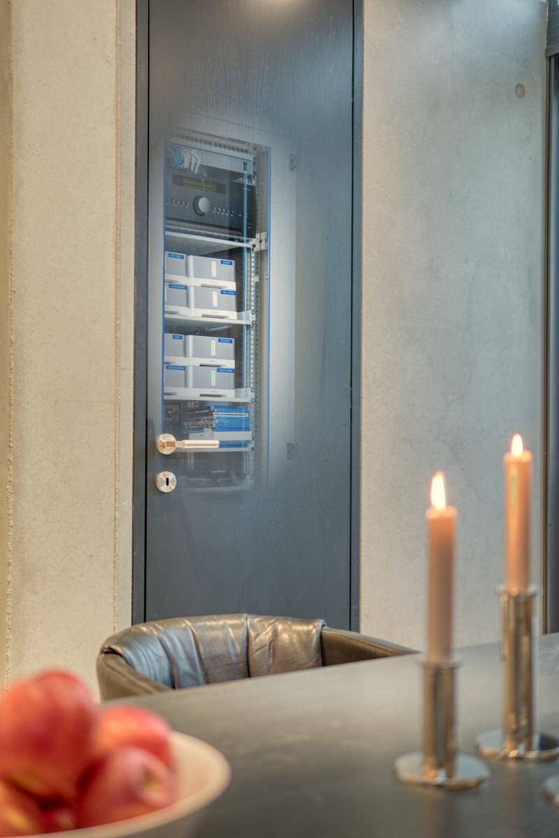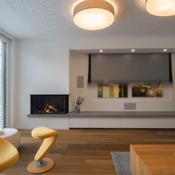 In einem dritten Objekt ging es um die dezente Integration eines komplexen AV-Systems in ein langgestrecktes Wandboard, in dem auch der Kamin untergebracht war. Eine wahrhaft tückische Herausforderung, an dieser „Firewall“ die versteckte Elektronik nebst Lautsprecher so zu verbauen und zu „belüften“, dass die Wärme des Kamins sie nicht beeinträchtigten oder gar beschädigen kann! In anderen Planungen wurden derweil mehr oder weniger unsichtbare HiFi-Systeme um Lautsprecher von Avantgarde Acoustic, Burmester oder Piega herum konstruiert.