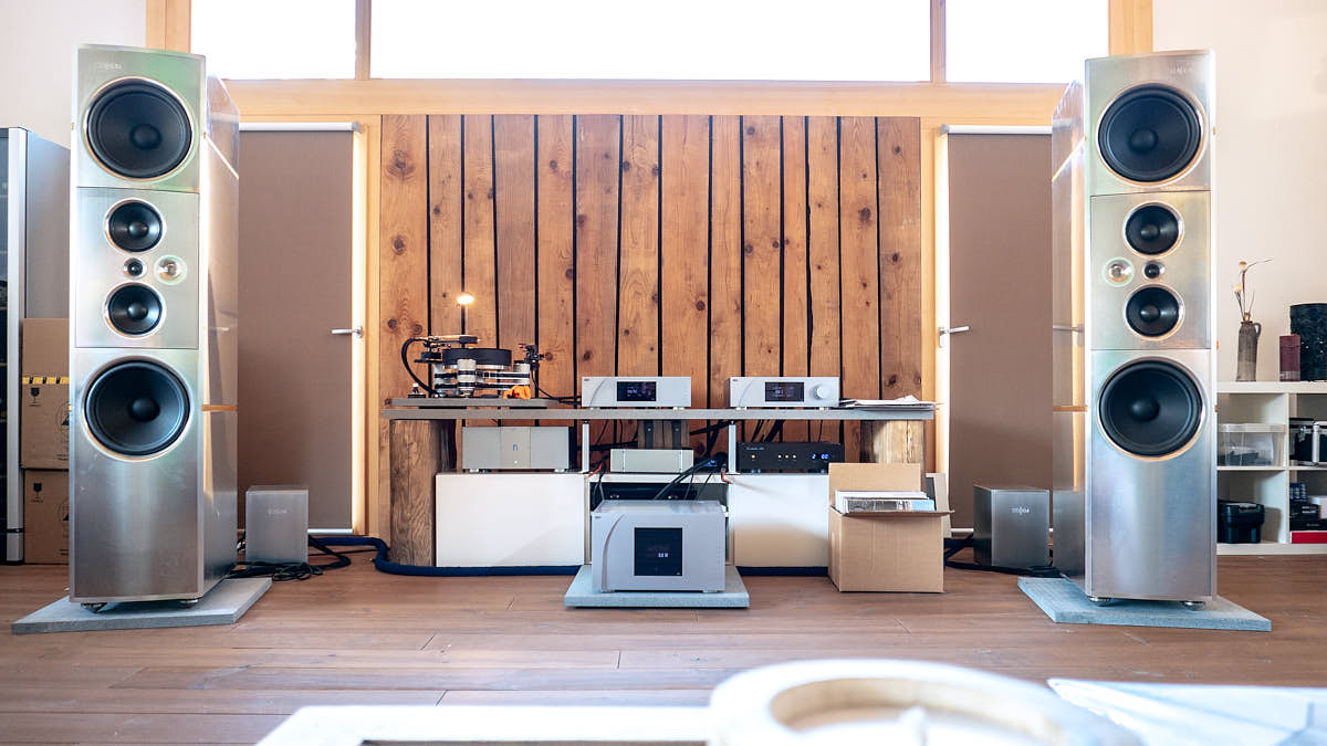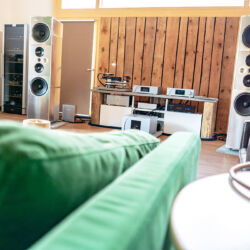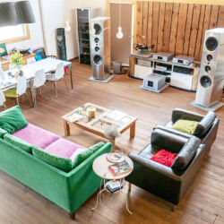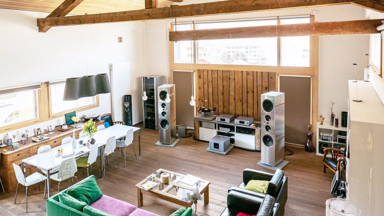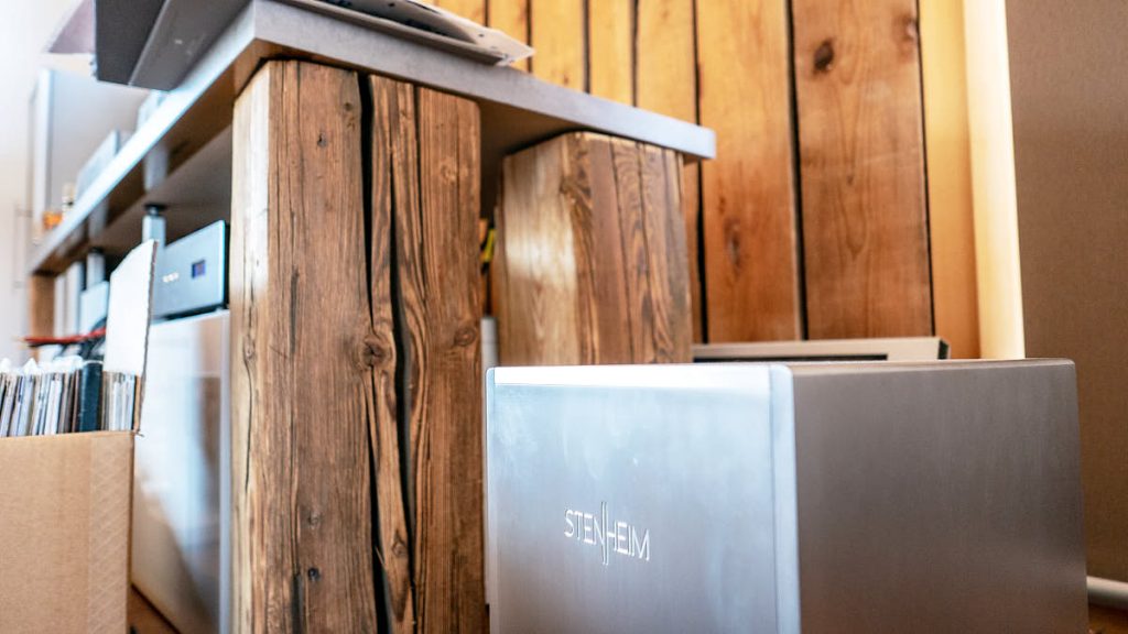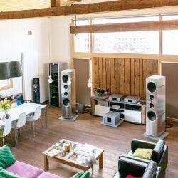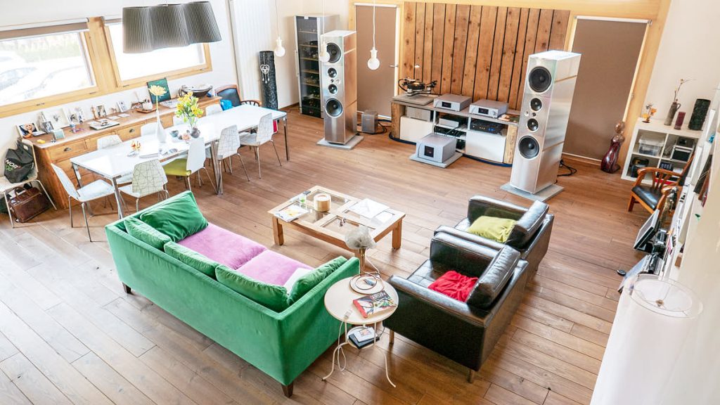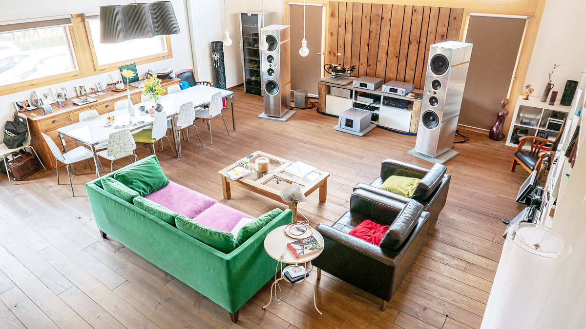 Atmosphärisch ist es dem Architekten Yves Coppey sehr gut gelungen, zwischen Scheunen-Romantik und HiFi-Luxus zu vermitteln. Als Reminiszenz an die frühere Nutzung gibt es reichlich Holz in der Hütte, zugleich ist die robuste Statik des Gebäudes für durchaus schwere Lasten ausgelegt. Auch bietet der große und stabile Raum viel Platz, nicht nur für audiophile Großtaten, und klingt – trotz angrenzender offener Küche und Galerie – „von Natur aus“ gut. Tatsächlich, so JPP zufrieden, war keinerlei spezielles Akustik-Tuning nötig, um in diesem Raum selbst nobelste High-End-Systeme zur Höchstleistung zu treiben. Oder audiophile Prototypen zu testen. Oder einem Stenheim-Produkt den letzten klanglichen Feinschliff zu verpassen, was oft genug ein und dasselbe ist. Derlei Dinge erledigt JPP hier regelmäßig und gern.