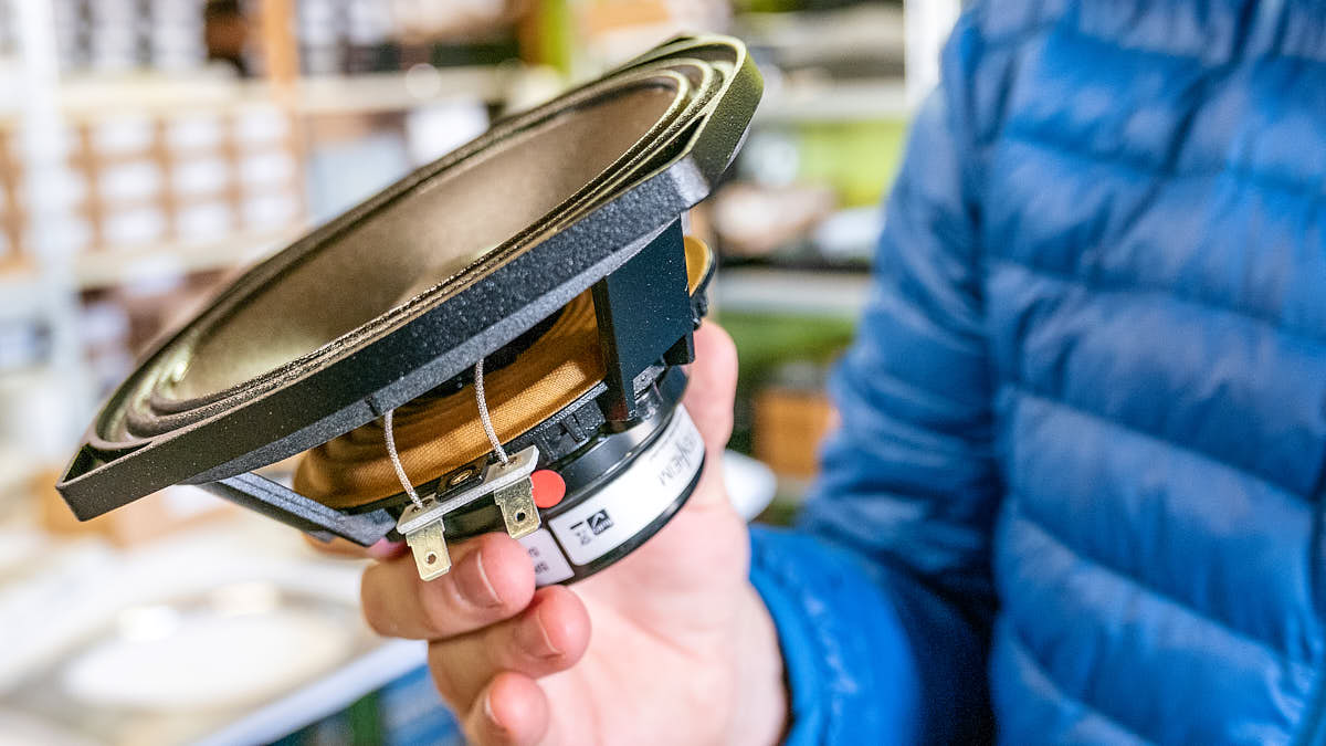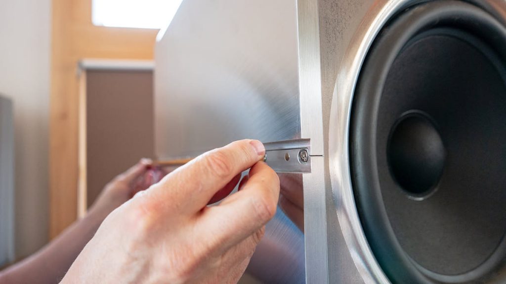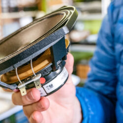 Bestückung: 4 x 32-cm-Tieftöner (davon 2 auf der Rückseite), 2 x 17-cm-Mitteltöner und 1 x Kalotten-Hochtöner (in D’Appolito-Konfiguration), 1 x Superhochton-Bändchen