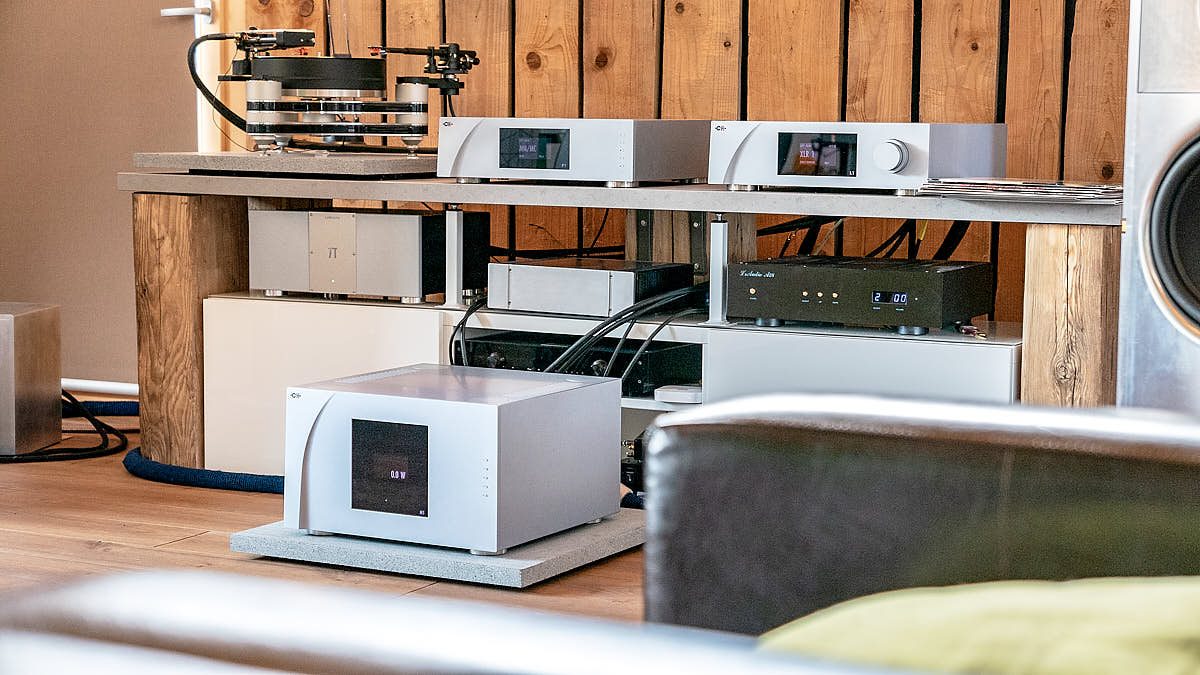 Optisch deutlich zurückhaltender als die Aufsehen erregenden „Aluminium-Rohlinge“ ist die begleitende Verstärkerelektronik von CH Precision. Ebenfalls aus der Schweiz stammend, weiß Jean-Pascal Panchard die schlicht-schönen Komponenten wegen ihrer klanglichen Unbestechlichkeit zu schätzen. Hin und wieder kommen hier auch andere verstärkertechnische Delikatessen zum Zuge, etwa die Großtaten von DartZeel. Doch im aktuellen Setup dienen schwere Amps vom Typ CHP M1 als Triebwerke für die – beachtlich wirkungsgradstarken und zugleich hoch belastbaren – Stenheim Ultime. Die zentrale Verwaltung aller eingehenden Musiksignale übernimmt ein CH Precision CHP L1. Unter den Zuspielern befindet sich beispielweise ein La Rosita π (Pi) sowie ein Mac als Musikserver. Einige Digitaldaten strömen über einen DAC von L’s Audio heran. Diese Marke habe ich noch nie zuvor gehört, vermutlich eidgenössisch? JPP verrät, dass es sich hierbei um eine selbst gebaute DAC-Vorstufe eines Freundes handele, die – wer hätte das gedacht – „gar nicht mal so schlecht klingt“. Sehr viel hält Jean-Pascal auch vom Phonoentzerrer CH Precision P1, der mit einer anpassungstechnischen Besonderheit das große Analogglück vermittelt. Die Phonostufe darf sich übrigens „seit genau gestern“ besonders gut in Szene setzen. Warum das?