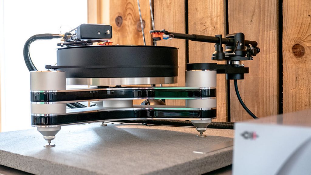 Dabei offenbart sich bei genauerem Hinschauen auf gewisse Details, etwa beim sympathisch rustikalen HiFi-Rack von Jean-Pascal, sogar noch Potenzial nach oben. Eine hochgradig ambitionierte Anlage ist halt niemals wirklich perfekt, sondern regt immer wieder zu weiteren Steigerungen an. Auch könnte man beispielsweise zu den beiden „auffälligsten“ Produkten wortwörtlich noch eine „Erklärung“ abgeben: Clearaudio hat mit dem Übermodell Statement ein gar gewaltiges Schiff im Analoghafen ankern. Stenheim wiederum bietet oberhalb der Reference Ultime noch ein System namens Reference Statement an. Dieses Schallwandlerquartett umfasst dann neben zwei Schallwandlerskulpturen, die den Ultime-Säulen in vielen Punkten ähneln, noch zwei weitere Subwoofer-Säulen im XXL-Format. Das Reference-Statement-System beschäftigt dann insgesamt zwölf Tiefsttöner, die locker bis auf 10 Hertz hinabsteigen und von integrierten Endstufen mit mehr als 10 000 Watt Leistung befeuert werden. Mit insgesamt einskommazwo Tonnen Gewicht lässt sich der süße HiFi-Irrsinn ebenfalls erahnen.