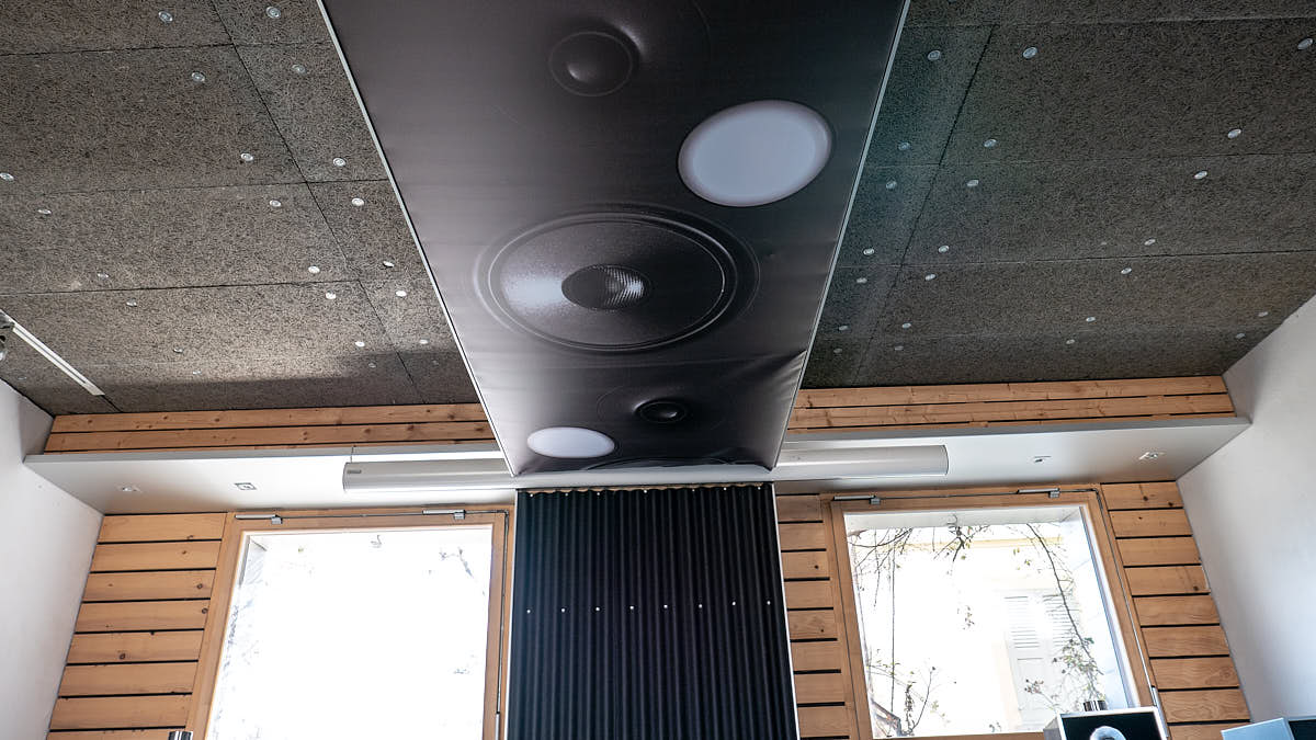 Das offene Musik-Wohnzimmer von Jean-Pascal Panchard (JPP) besitzt eine Grundfläche von netto 53 Quadratmetern, die Deckenhöhe beträgt dabei 3,8 Meter, am Giebel sogar rund 5,2 Meter. Damit war einerseits zu beiden Seiten der Anlage ein Zugang zur kleineren Terrasse realisierbar, andererseits – und im wahrsten Sinne darüber hinaus – auch eine große Fensterfläche. Für einen ungetrübten Gipfelblick beim Musikhören. Wenn ich länger darüber nachdenke, ist das fast schon zu viel des Guten … (Ist es natürlich nicht, zu den Einzelheiten kommen wir später.)