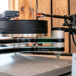 Nun, exakt einen Tag vor meiner Ankunft traf ein Clearaudio Innovation in der Ex-Scheune ein, ausgestattet sowohl mit dem Tangentialtonarm TT-3 als auch dem Drehtonarm Universal 12″, in denen jeweils ein Clearaudio DaVinci V2 montiert ist. Dieses Setup kommt mir doch sehr bekannt vor: Eine ganz ähnliche Konfiguration dient uns im FIDELITY-Hörraum als Analogreferenz und erfreut sich dort allgemeiner Beliebtheit … Erfreut ist aber auch Melanie Groetsch, die des Öfteren in der Schweiz unterwegs ist und sich gefragt hatte, wie gut sich der große Clearaudio-Plattendreher im semi-privaten Stenheim-Umfeld wohl schlägt.