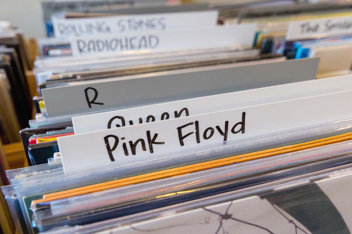 Direkt neben dem Eingang finden sich einige Boxen mit Schallplatten, doch lange können diese unsere Aufmerksamkeit nicht beanspruchen – die wendet sich nämlich flugs dem strategisch in allen Ecken und Enden platzierten Sound-Equipment zu. Stehen in typischeren Plattenläden klar als reine Testwerkzeuge vorgesehene Plattenspieler herum, bevölkern hier etliche Dreher, Verstärker und Lautsprecher audiophil orientierter Marken den Raum: Ein Rega P3 sorgt über ein Paar Blumenhofer-Lautsprecher für die Hintergrundbeschallung, in einer gemütlich hergerichteten Raumecke ist ein System mit einem MoFi-Dreher und einem Paar KLH Model Three spielbereit aufgebaut. Wer sich genauer umsieht, findet zudem etliche Komponenten von Pro-Ject, DALI, Grado und zahlreichen weiteren Herstellern.