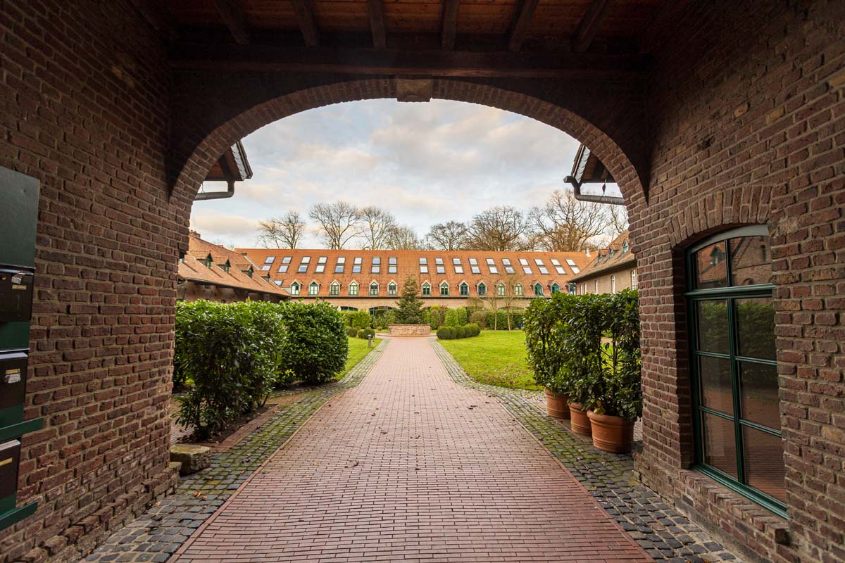 Aber immer langsam. An einem frühen Mittwochmorgen Anfang Dezember stelle ich mein Auto in der Zufahrt eines riesigen Gutshofs ab. Über den Wiesen und Äckern hängen matte Nebelschleier, die ihren aussichtslosen Kampf gegen die Sonne in den nächsten Minuten verlieren werden. Die reinste Idylle. Auch wenn eingefleischte Rheinländer bei dieser Bemerkung genervt mit den Augen rollen: Neuss habe ich mir hässlicher vorgestellt.