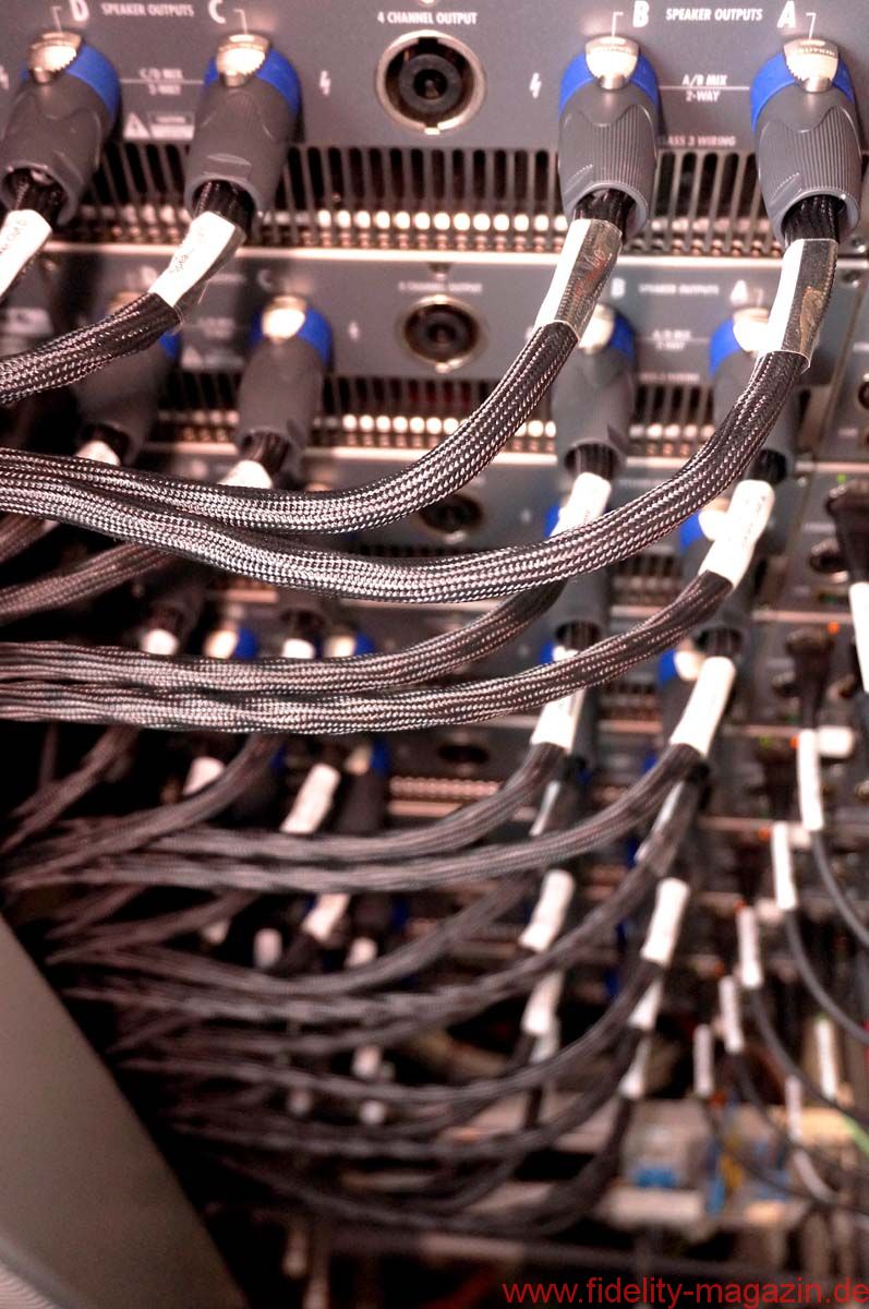 Ursprünglich sind wir ja wegen besonders guter Kabel hierher gekommen. Wegen des dadurch besseren Live-Klangs über die P.A. im Saal. – Allerdings ist es unmöglich zu beurteilen, wie viel Anteil die Verkabelung am Gesamtklang eines Audiosystems wirklich hat, das gilt für Profi- wie für HiFi-Anlagen. Immerhin ist man sich einig, dass „gute Kabel“ kein Fehler sind, sondern Pflicht. Weniger einig ist man sich, was ein „gutes Kabel“ denn eigentlich auszeichnet. Und was es kosten darf. Vor allem Pro-Audio-Leute winken sofort ab, wenn ein bestimmtes Kabel deutlich mehr kostet als die übliche Standardware. Verständlich, wenn Kabellängen in Kilometern verhandelt werden.
