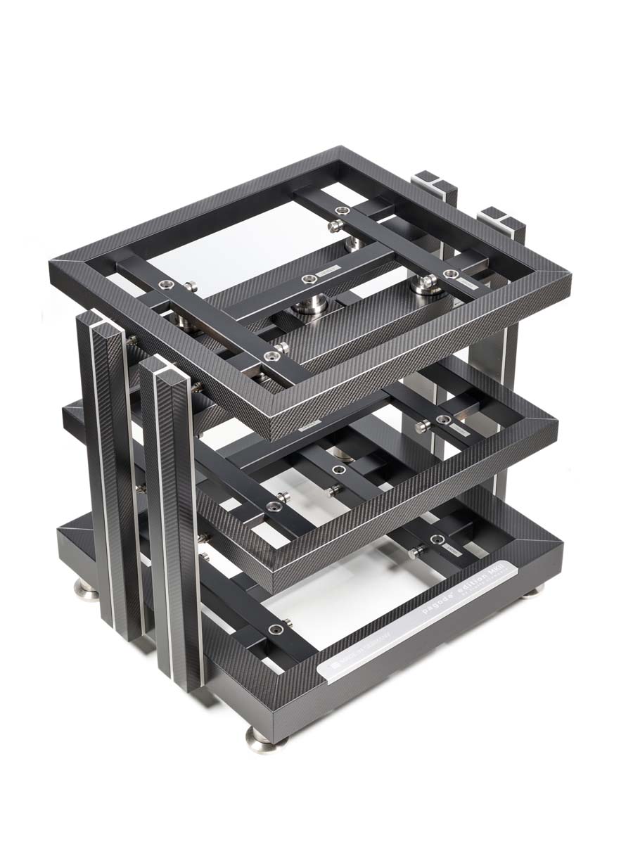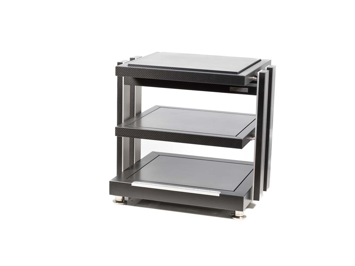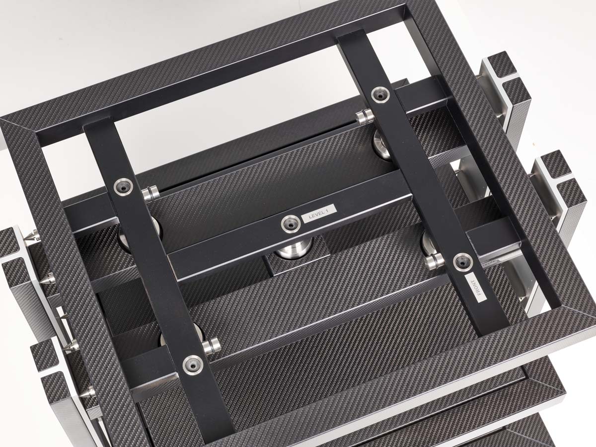 Konzept: carbonummanteltes HiFi-Rack mit mehrfacher Entkopplung und Resonator-Technologie