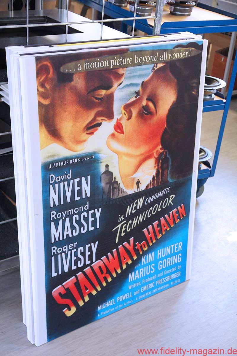 Auf dem Weg hinaus an die frische Luft entdecke ich noch eine schneidernde Dame, die Akustik-Elemente mit individuell bedrucktem Stoff bezieht. Derzeit scheint die Bestellung eines Filmposter-Fans bedient zu werden …