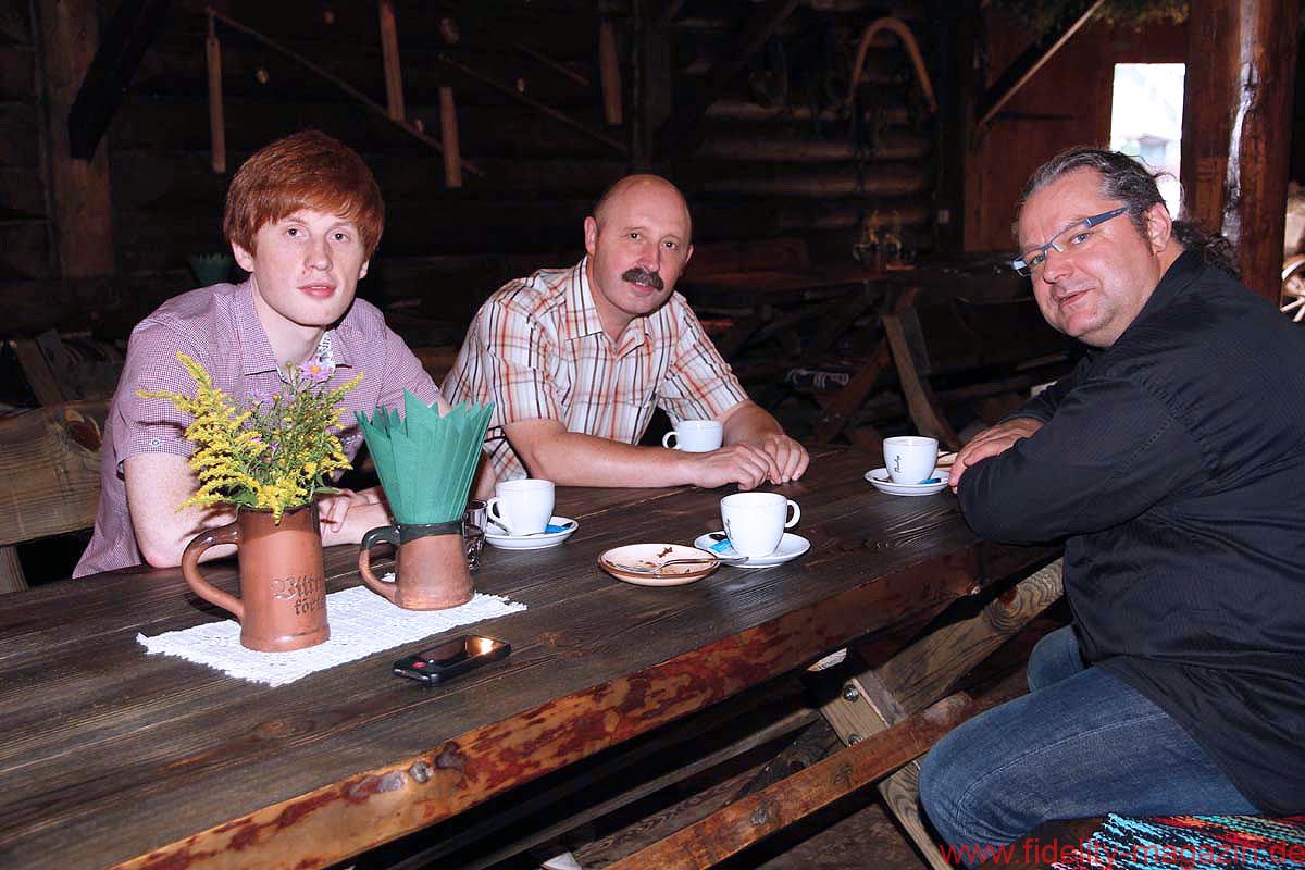 Das war vor gut 20 Jahren. Audes ist heute die einzige mittelständische Firma der einst riesigen UdSSR-Audiobranche (10 Millionen HiFi-Anlagen pro Jahr!), die sich im freien internationalen Markt behaupten konnte. Audes (bzw. Estonia) hatte seinen Hauptsitz bereits 1985 von Tallinn ins beschauliche Jõhvi verlegt. Meine Vermutung, der Ortsname werde so ähnlich wie „Chauvi“ ausgesprochen, ist übrigens komplett falsch: Man spricht es „Jeächwe“ aus, mit kurzem „-we!“ Als wir also in Jõhvi eintreffen und im Audes-Konferenzraum einen ersten Kaffee trinken, bitte ich die Herren Tjurin zum Diktat. Igor und Aleksij Tjurin sprechen nacheinander das bezaubernde Wort ins Mikrofon. Ich liebe solche Tondokumente.