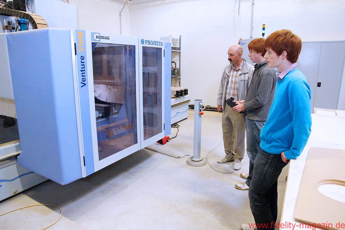 Igor freut sich, dass sein ältester Sohn Aleksij, kurz: Alex, in seine Fußstapfen treten will. Igor, 1960 nahe Moskau geboren und studierter Wirtschaftswissenschaftler, schickte Alex zum Studium nach England, auf die renommierte University of Southampton, wo der 23-Jährige kürzlich einen Abschluss in „Acoustics“ machte. Der jüngere Bruder, Daniil, ist am heutigen Tag zwar ebenfalls in der Firma, doch der 18-Jährige absolviert bei Audes lediglich einen Ferienjob. Er hat gerade die Schule abgeschlossen und will Medizin studieren. Mit HiFi oder Lautsprechern hat Daniil nicht viel am Hut; mit der Steuerung einer CNC-Fräse hingegen schon …