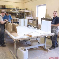 In der ersten Halle hat Igor in letzter Zeit einige neue Maschinen zur Holzverarbeitung installieren lassen, was Qualität und Quantität vieler Audes-Produkte zugute kommt. Für eine kleine Demonstration versammeln wir uns um die jüngst erworbene Fünf-Achsen-CNC-Fräsmaschine.