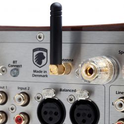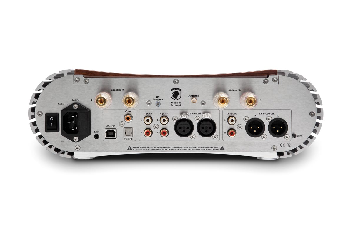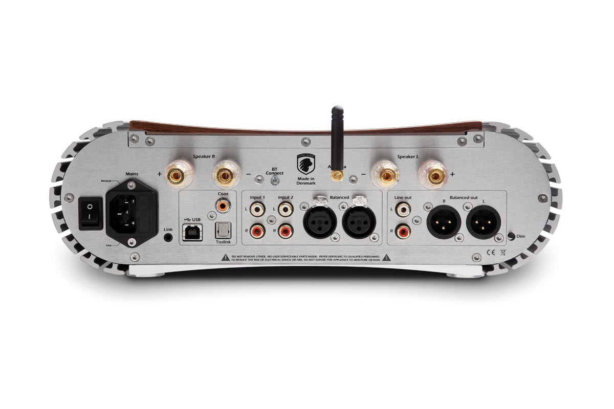 Rückseitig kann man sich von den vielfältigen Anschlussmöglichkeiten überzeugen. Konnektivität wird großgeschrieben: USB und S/PDIF optisch sowie koaxial für digitale Quellen und zwei Paar Cinchbuchsen plus ein XLR-Eingang für analoge, stehen symmetrischen und unsymmetrischen Ausgängen gegenüber – mit der Bluetooth-Antenne ist alles da, was eine Schaltzentrale des modernen Geräteparks so braucht. Schallwandler werden über Bananenstecker angeschlossen oder per blanker Litze oder Kabelschuh geklemmt. Erfreulich – und das hat man selten – auch die angenehm knappe und ausgezeichnet verständliche Bedienungsanleitung, die die Inbetriebnahme mit fast schon britischem Understatement schildert und mit einer klaren Empfehlung endet: „Enjoy!“