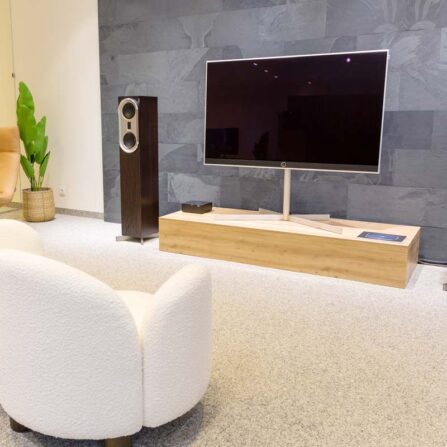 Zugang zum Neo erhalten Signale analog (XLR) oder digital (AES/EBU). Eine Fassung für einen dritten Anschluss ist vorgesehen, er war in unserem Muster aber nicht montiert. Etwas unterhalb der übrigen Buchsen liegt ein optionaler „Dante“-Port, der Zugang über die noch junge Studio-Norm (Audio via LAN-Kabel) ermöglicht. Auch dieser Anschluss war bei uns nicht belegt. Schließlich kann man noch eine USB-Gerätebuchse entdecken, die allerdings nur für die Programmierung via Computer vorgesehen ist. Analog wird der ungeregelte Aktivlautsprecher wie gewohnt von einem Vorverstärker gespeist. Da der Neo keine Durchschleifpunkte besitzt, weder analog noch digital, ist das Verkabeln via AES/EBU spezieller. Man benötigt einen regelbaren DAC oder Streamer mit zwei digitalen XLR-Abgriffen (extrem selten) oder ein Y-Adapterkabel. In unserem Fall sprang Genuin Audios Musikserver Tars in die Bresche, der – passend für den Neo – mit zwei Digitalausgängen versehen ist. In absehbarer Zeit wird der Hersteller zudem einen Vorverstärker mit den erforderlichen Abgriffen anbieten, den wir allerdings nur als Rendering bestaunen durften. Der Vollständigkeit halber sei schließlich noch erwähnt, dass der Analogzugang bei einem Lautsprecher wie dem Neo gewissermaßen auch nichts anderes ist als ein weiterer Digitalanschluss: Direkt hinter dem Eingang werden die Signale in 24-bit Audio gewandelt.
