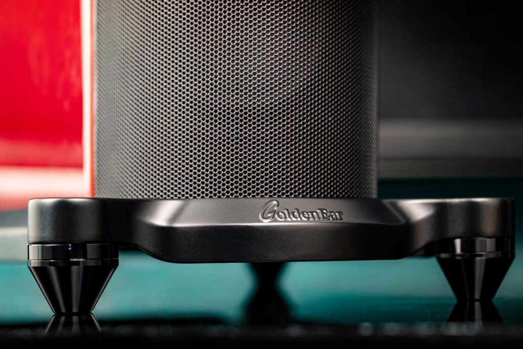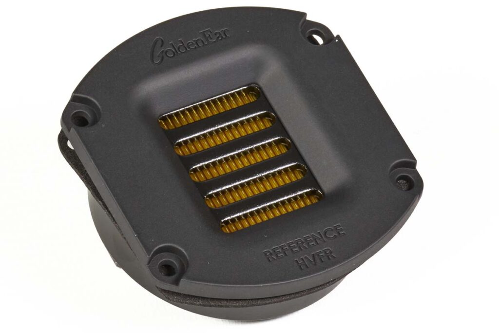 Kein einfach zu meisternder Spagat, doch GoldenEar hat diesbezüglich schon in der Vergangenheit ein mehr als kompetentes Händchen gezeigt. Wie kaum ein anderer Hersteller verstehen es die Amerikaner, hochwertige Musikwiedergabe in einem unkomplizierten Gesamtpaket zu verschnüren. Das gelingt ihnen mitunter deshalb, weil sie über Möglichkeiten verfügen, auf die die meisten anderen Hersteller nicht zugreifen können – allem voran greift man hier auf Treiber aus eigener Entwicklung und Fertigung zurück, statt sie extern zuzukaufen. Der Vorteil liegt hier nicht so sehr in der Klangqualität – SEAS, ScanSpeak und Konsorten genießen ihren guten Ruf nicht umsonst –, sondern vielmehr in der Flexibilität bezüglich des Formfaktors: GoldenEar legt insbesondere Wert auf ein Design, das sich optisch nicht aufdrängt, und das lässt sich mit unkonventionellen Membranformen wesentlich leichter umsetzen. Konkret erlauben die ovalen Basstreiber, deren Höhe fast das Doppelte der Breite beträgt, in Verbindung mit großzügig bemessenen, annähernd rechteckigen Passivmembranen dafür, dass die Lautsprecher trotz ihres auffällig schlanken Profils auch im Tiefton ordentlich Luft bewegen können.